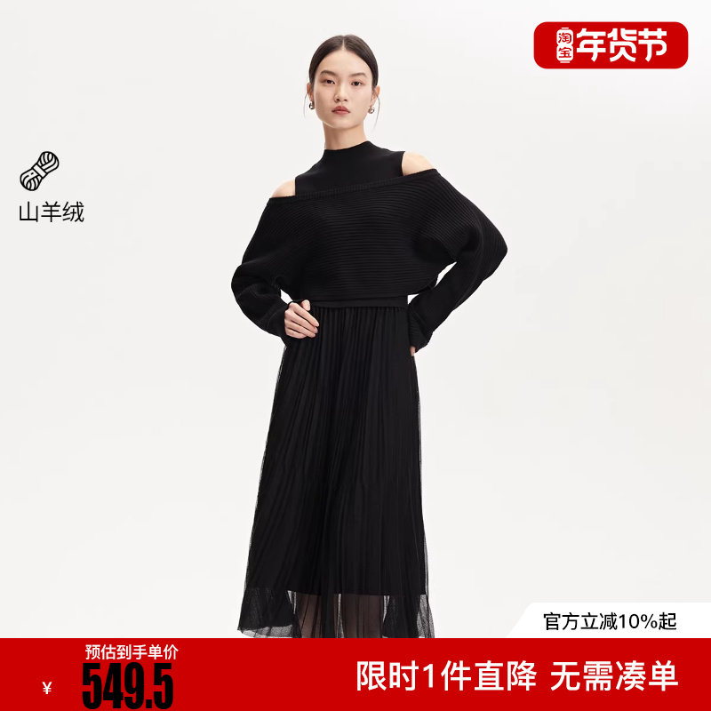 绫致Vero Moda连衣裙女2025冬新款真两件亮丝网纱裙简约时尚