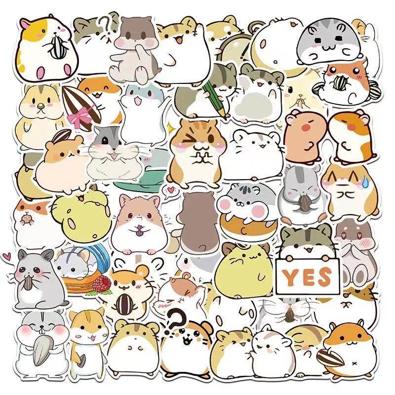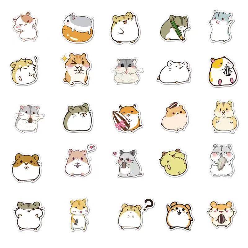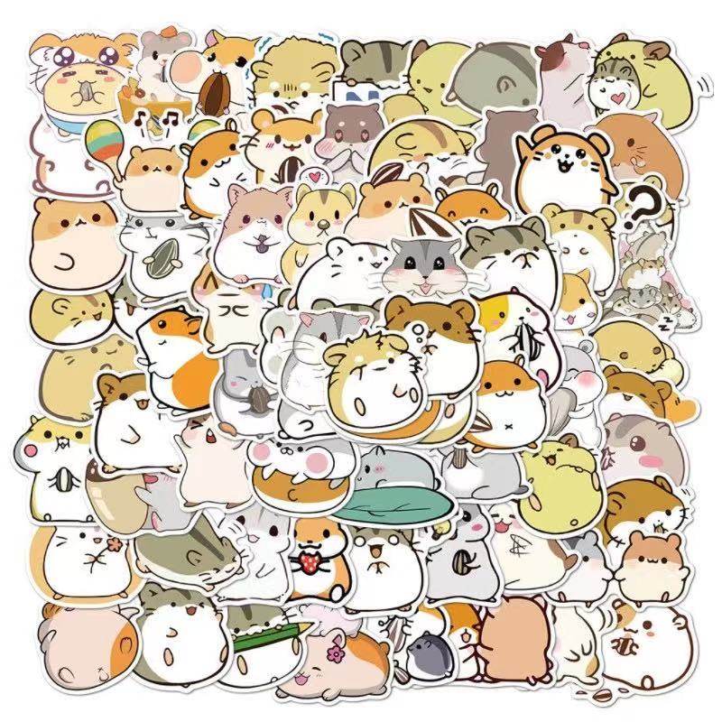 50/100张卡通可爱圆滚仓鼠手帐吉他手机壳滑板行李箱防水可移贴纸