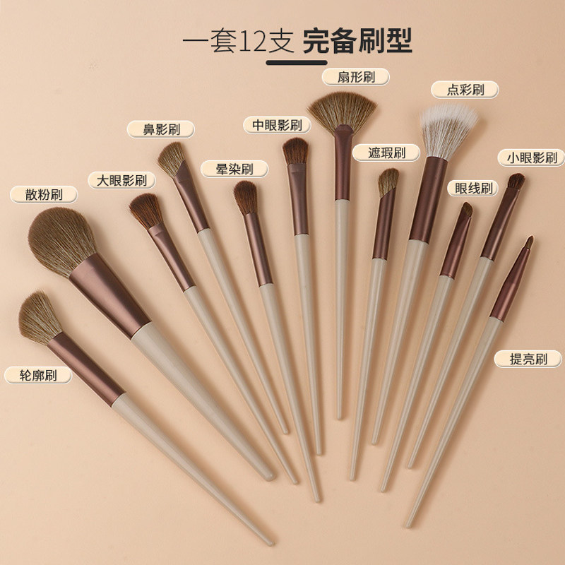 化妆刷套装12支全套刷子散粉鼻影修容腮红眼影刷适用便携点彩蓬松
