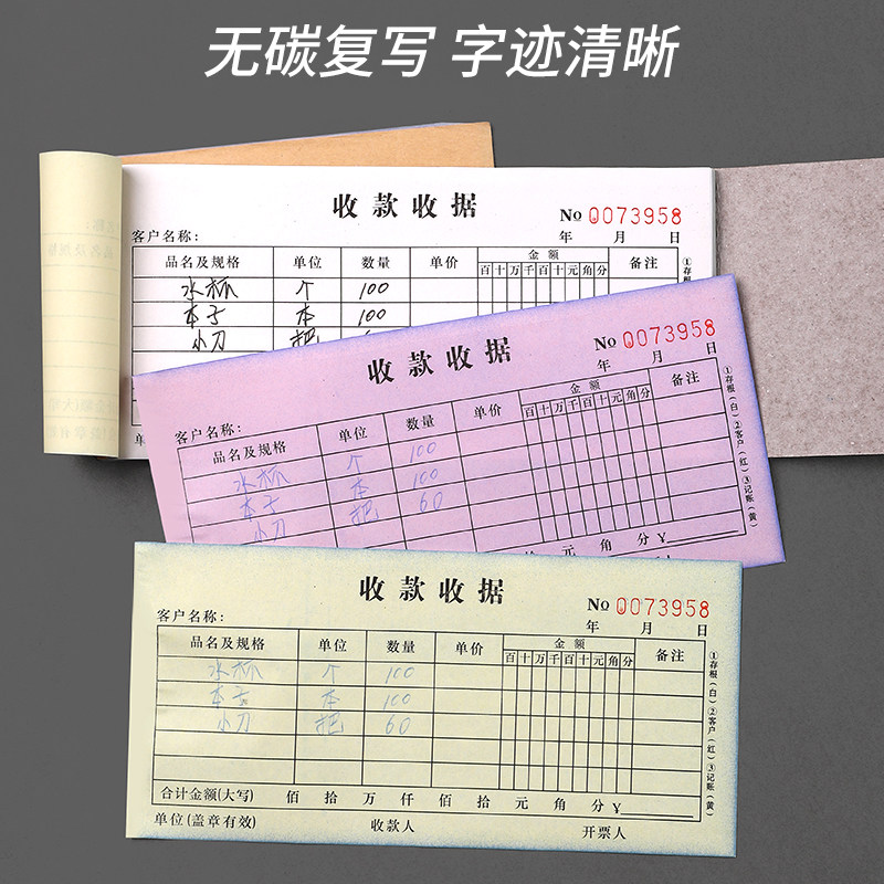 收款收据定制单栏多栏二联三联无碳复写餐饮财会财务用品印刷订定制送货单出货销售销货清单点菜单定做