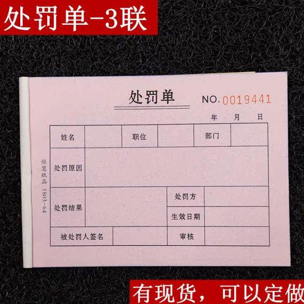 处罚单3联单罚款单公司员工夜店KTV酒吧小姐姐餐饮火锅扣工资处分
