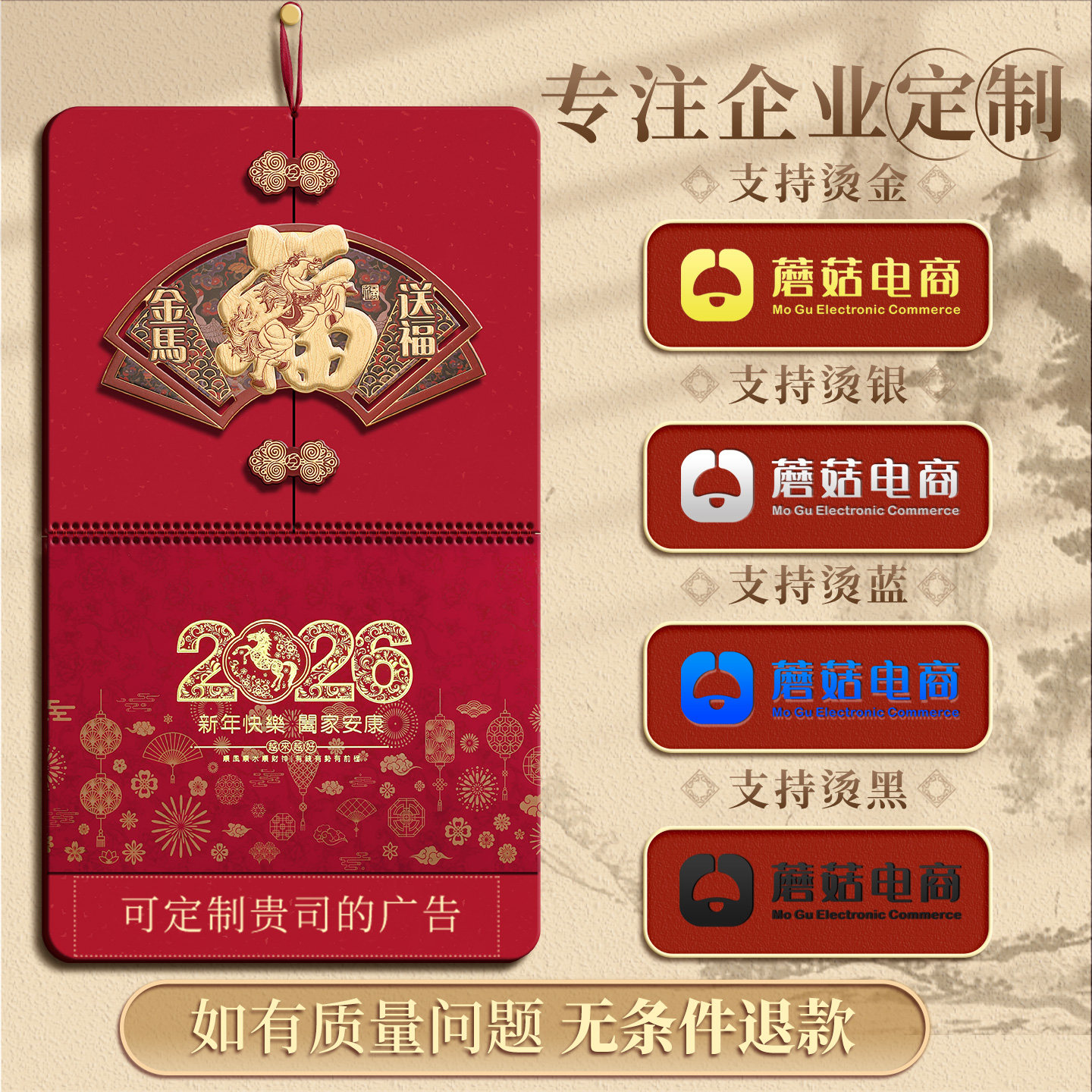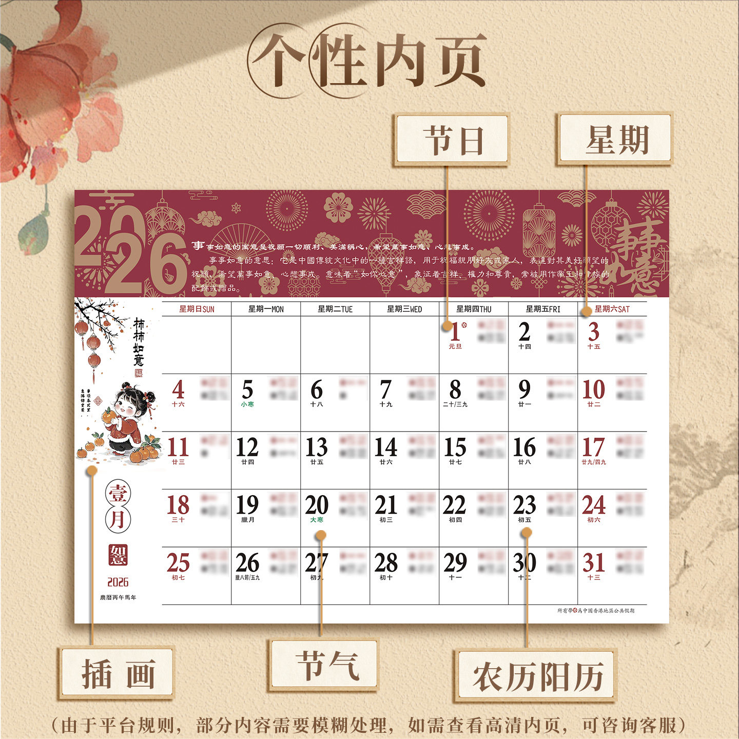 挂历2026年新款日历家用挂墙手撕式高档加厚大号大六开中国风传统客厅装饰墙贴订制马年创意月历福字吊牌定制