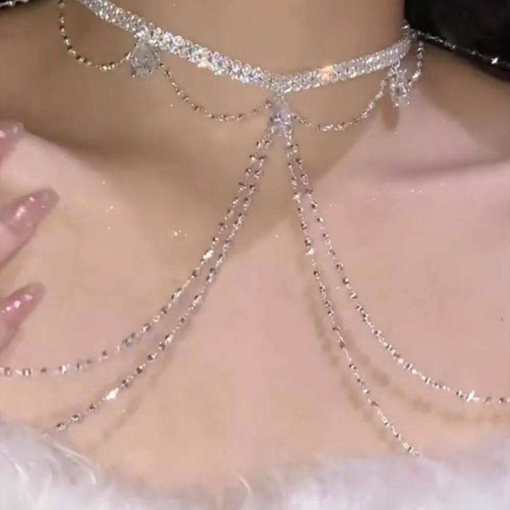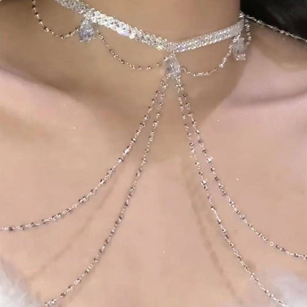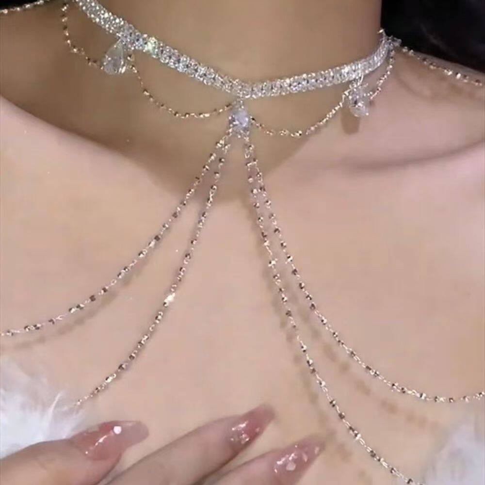 超闪水滴胸链身体链条女高级感夸张时尚气质轻奢小众性感肩链颈链