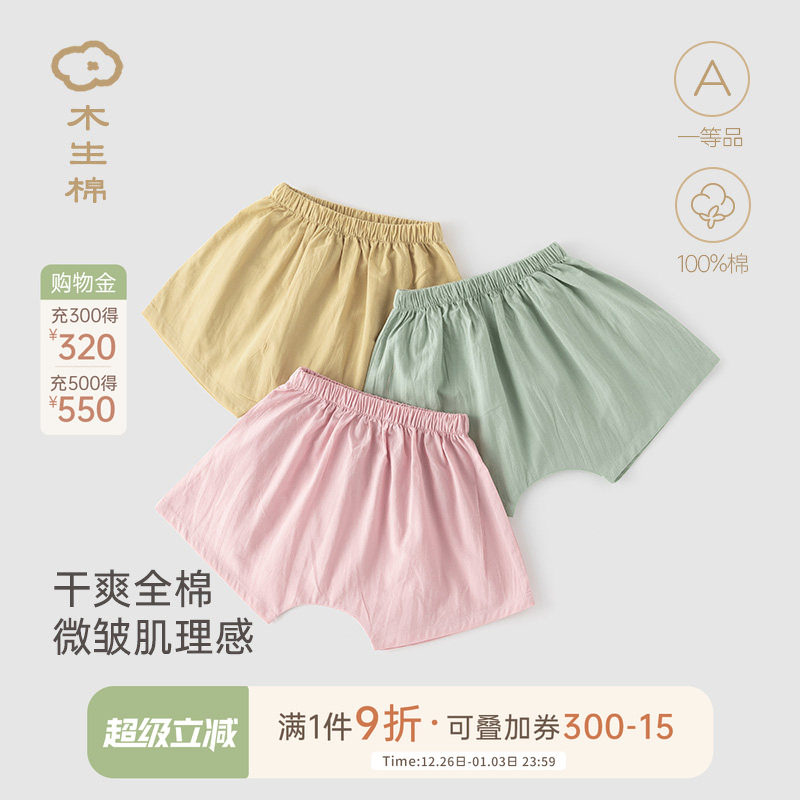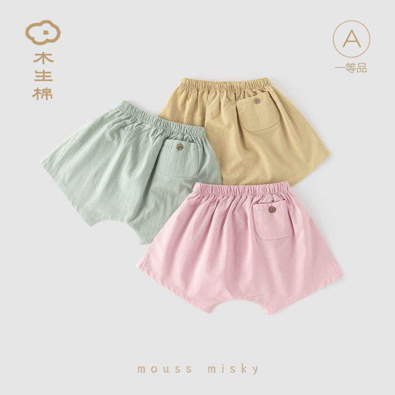 木生棉宝宝短裤夏季薄款婴儿纯棉透气大pp裤居家休闲哈伦裤松紧裤