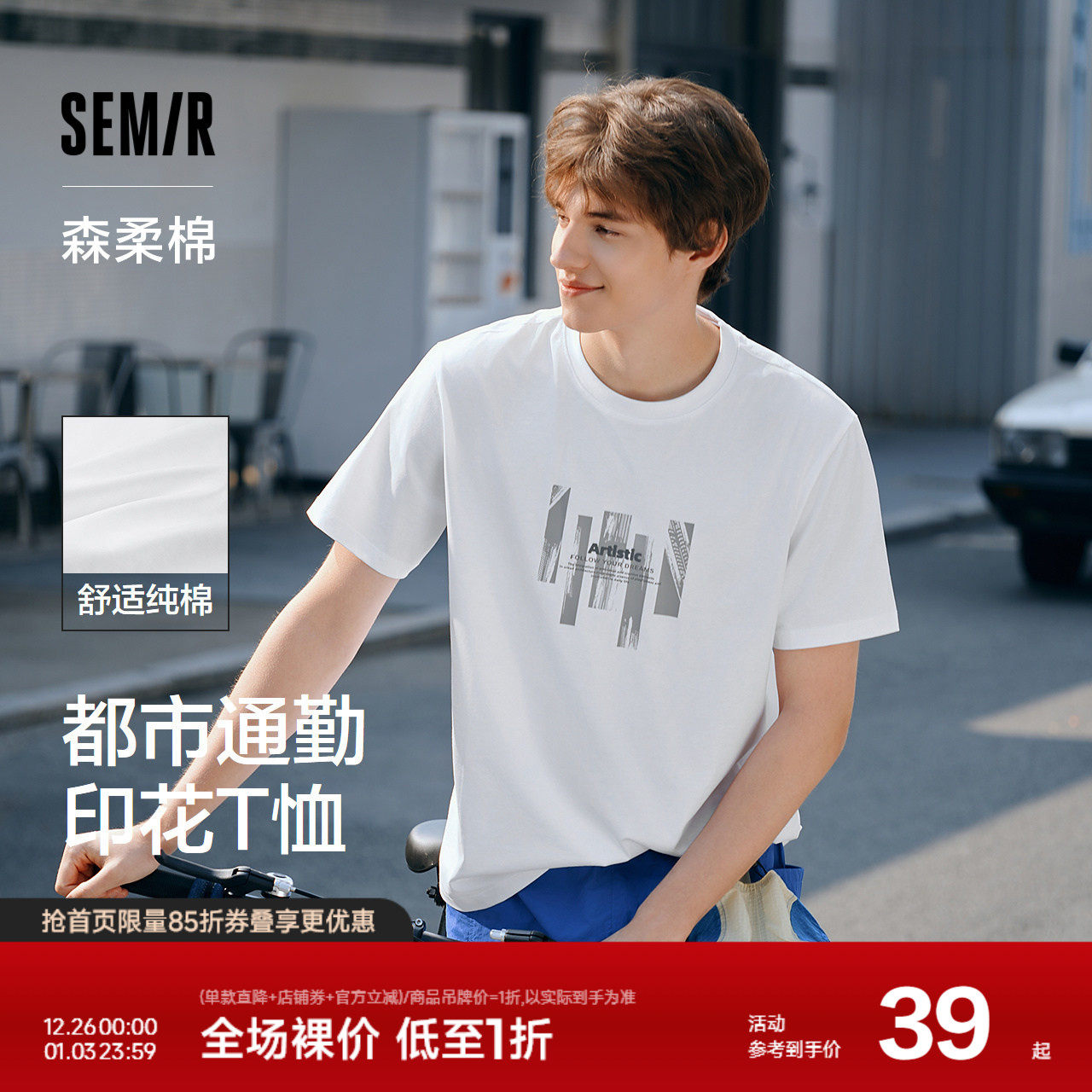 森柔棉|森马短袖T恤男纯棉夏装都市通勤印花正肩上衣时尚圆领白t