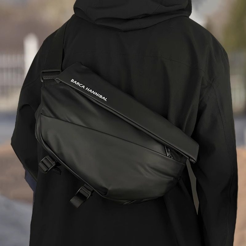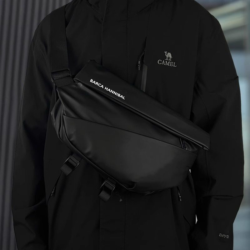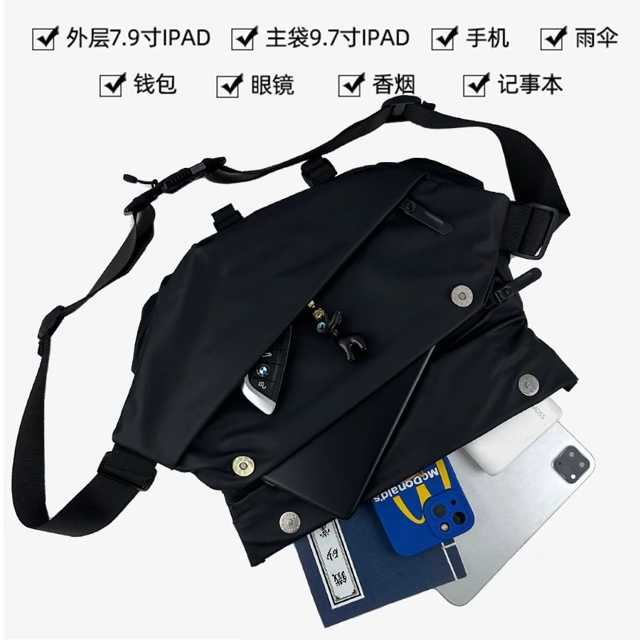 2025新款男士斜挎包防水运动单肩包休闲大容量胸包磁吸扣通勤时尚
