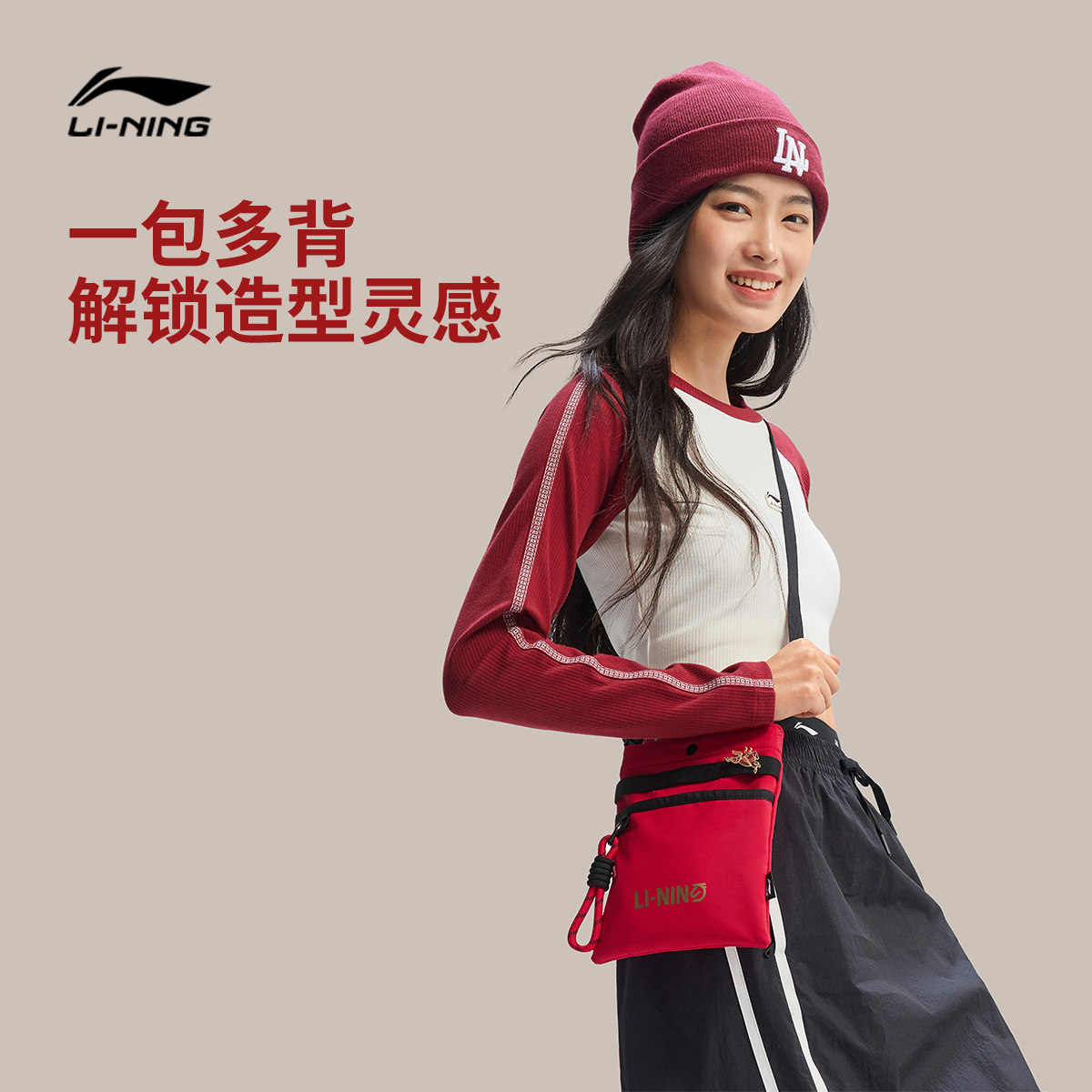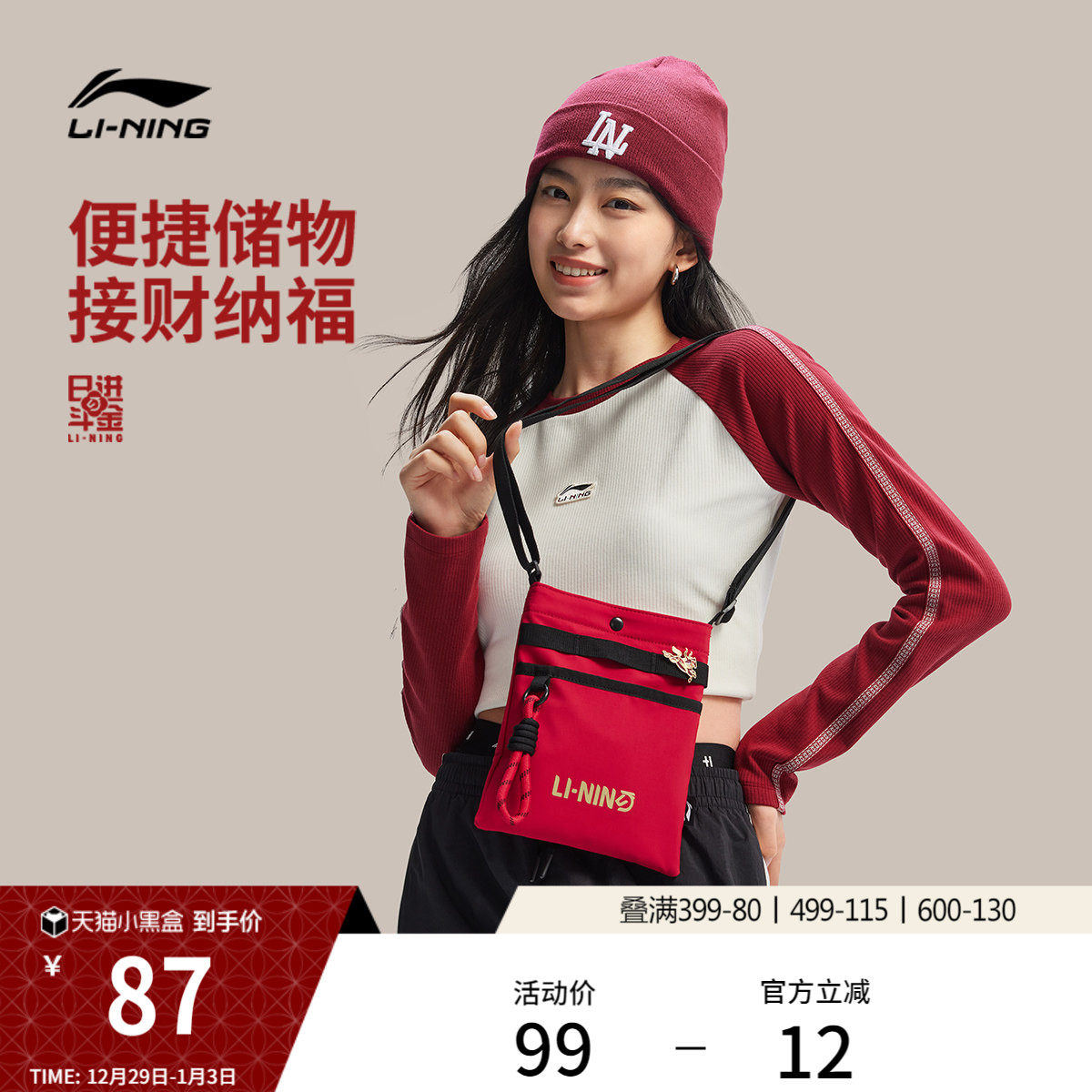 李宁日进斗金斜挎包男女新年鸿运穿搭红色便捷运动包手机包小方包