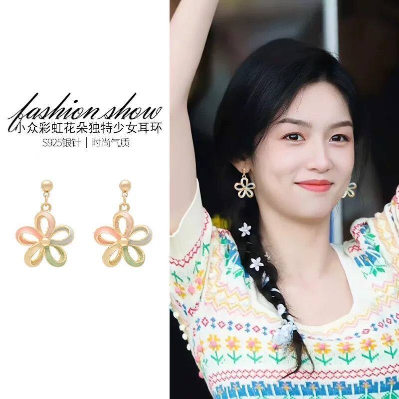 撞色小众设计多巴胺花朵耳环轻奢度假风耳钉2025新款爆款925银