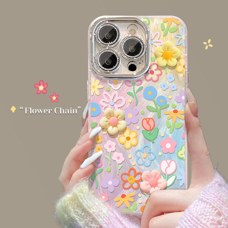 小清新立体花朵带手链高级感适用苹果16promax手机壳iPhone15plus保护套2025新款14多巴胺13少女心12甜美11硬