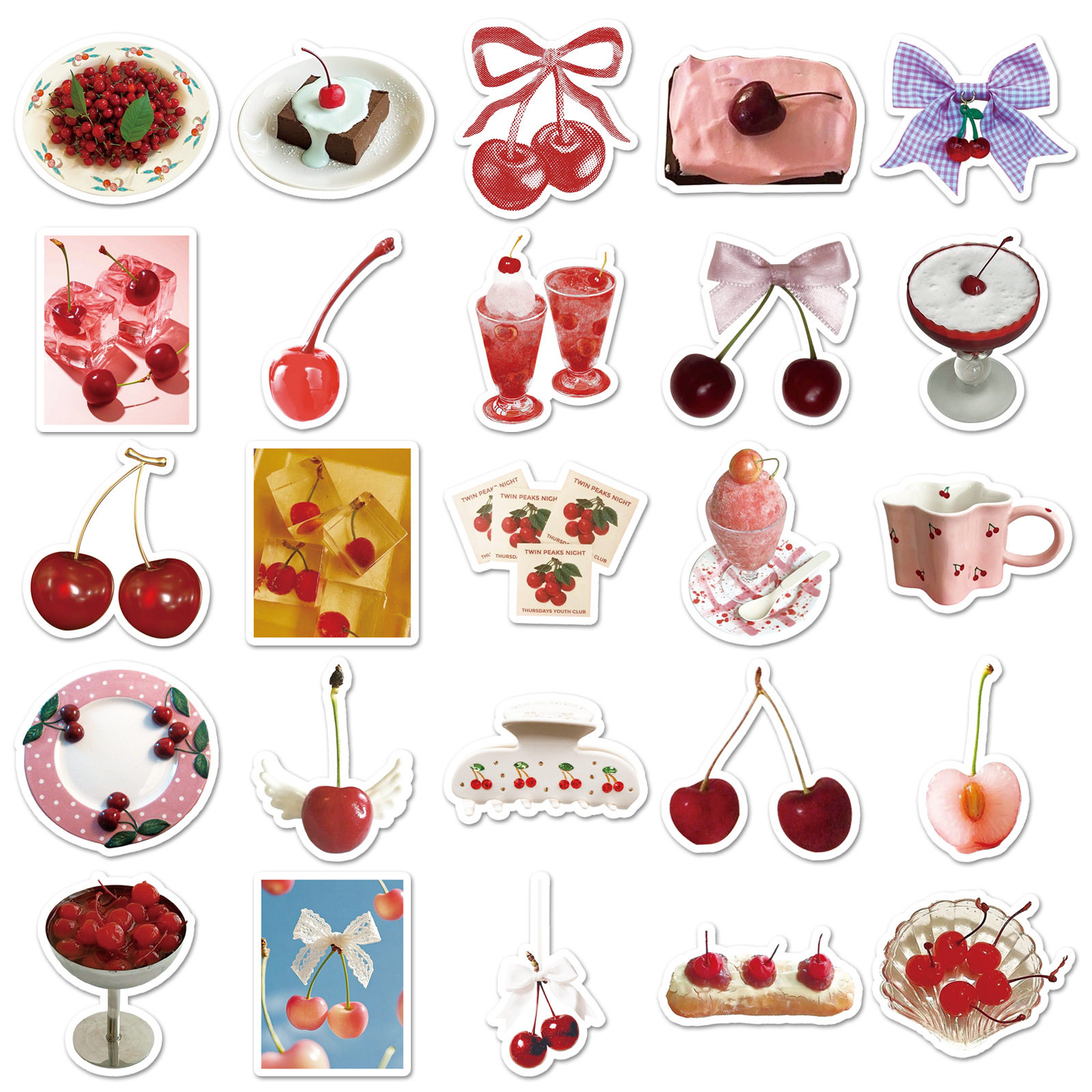 50张樱桃INS风贴纸甜美卡通水果小清新防水收纳盒DIY手机咕卡贴纸