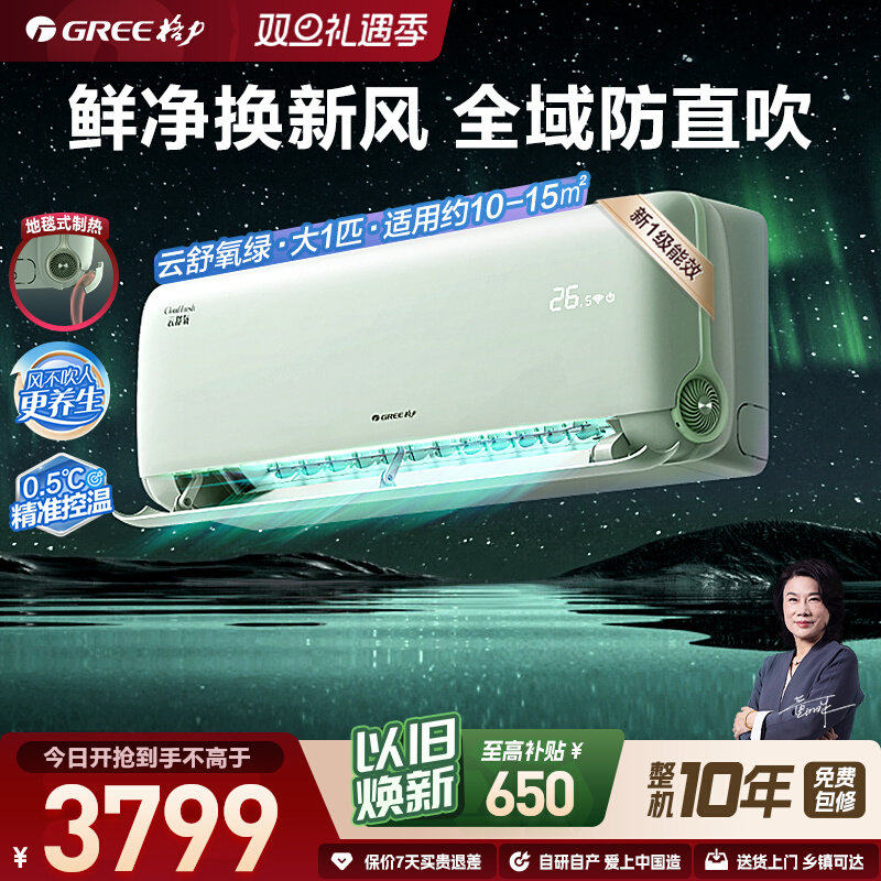 【格力官方】新一级能效大1匹变频冷暖卧室新风空调挂机云舒氧
