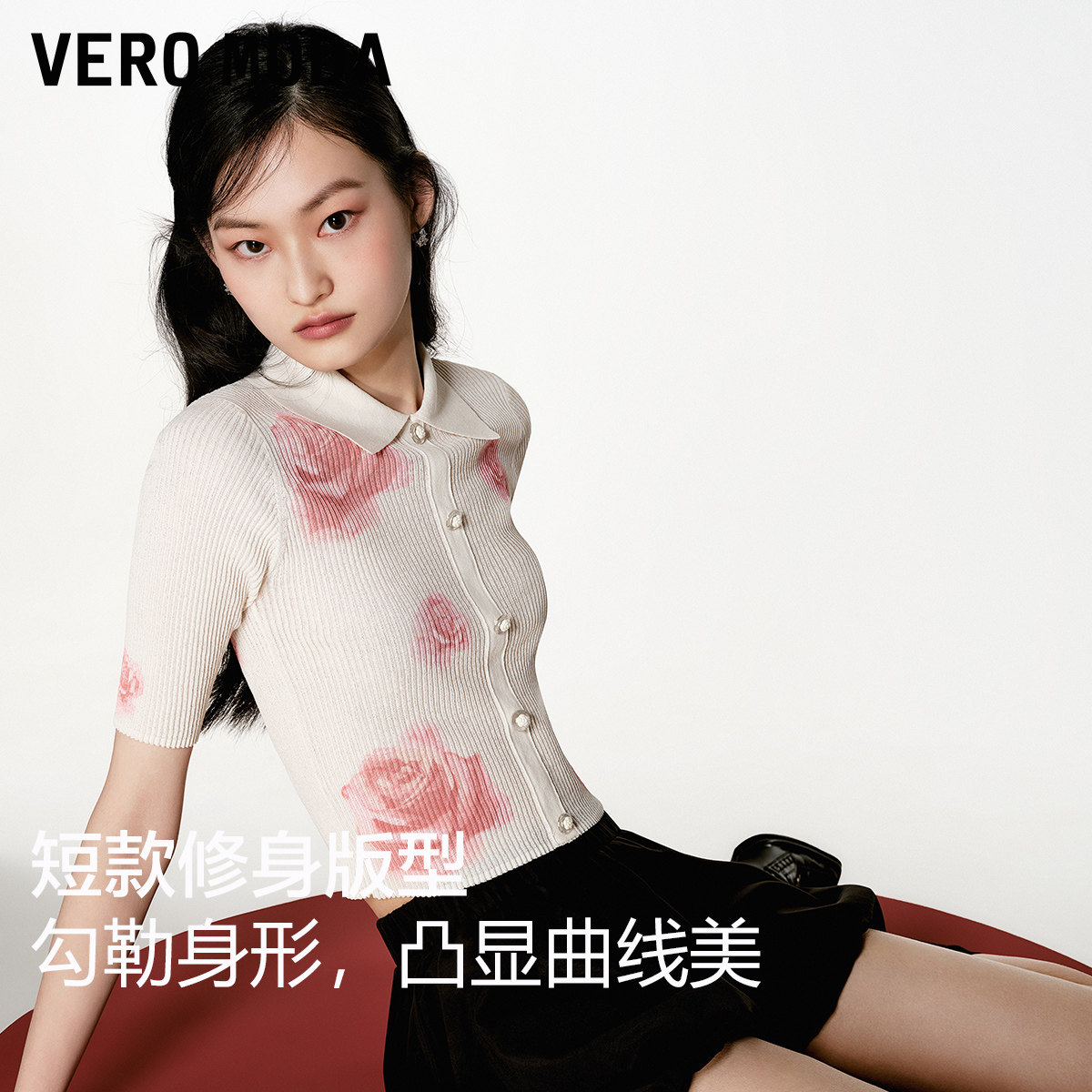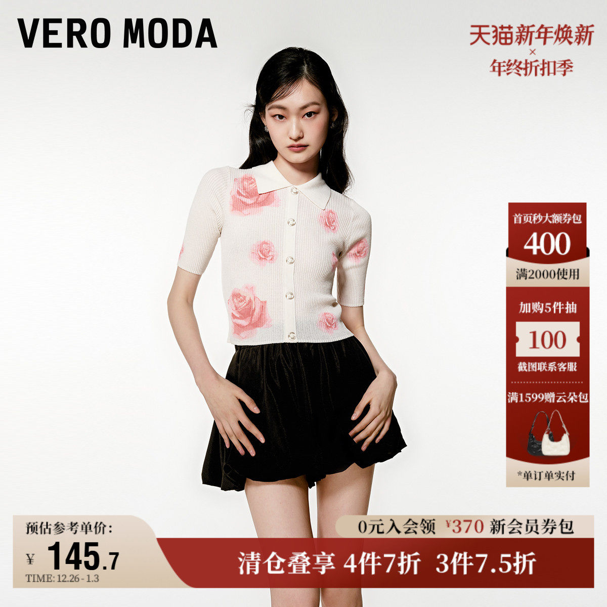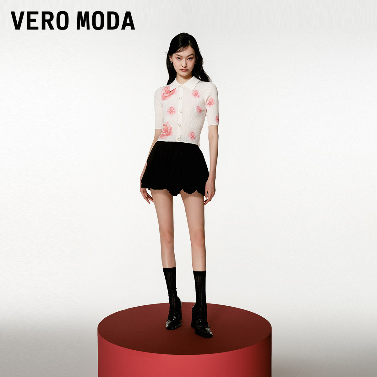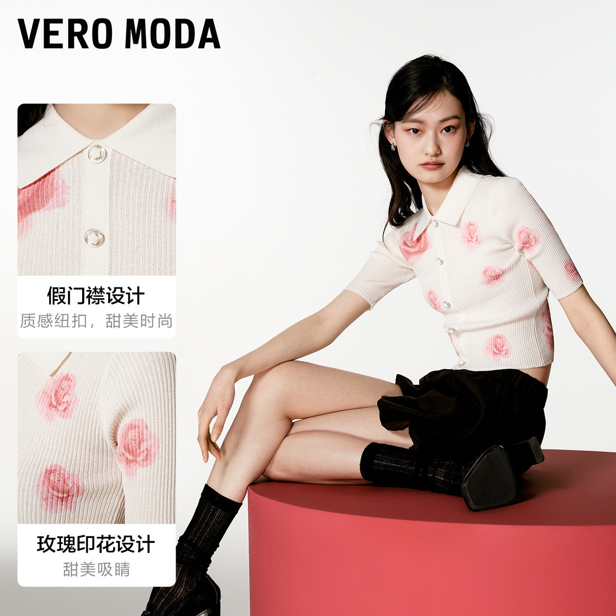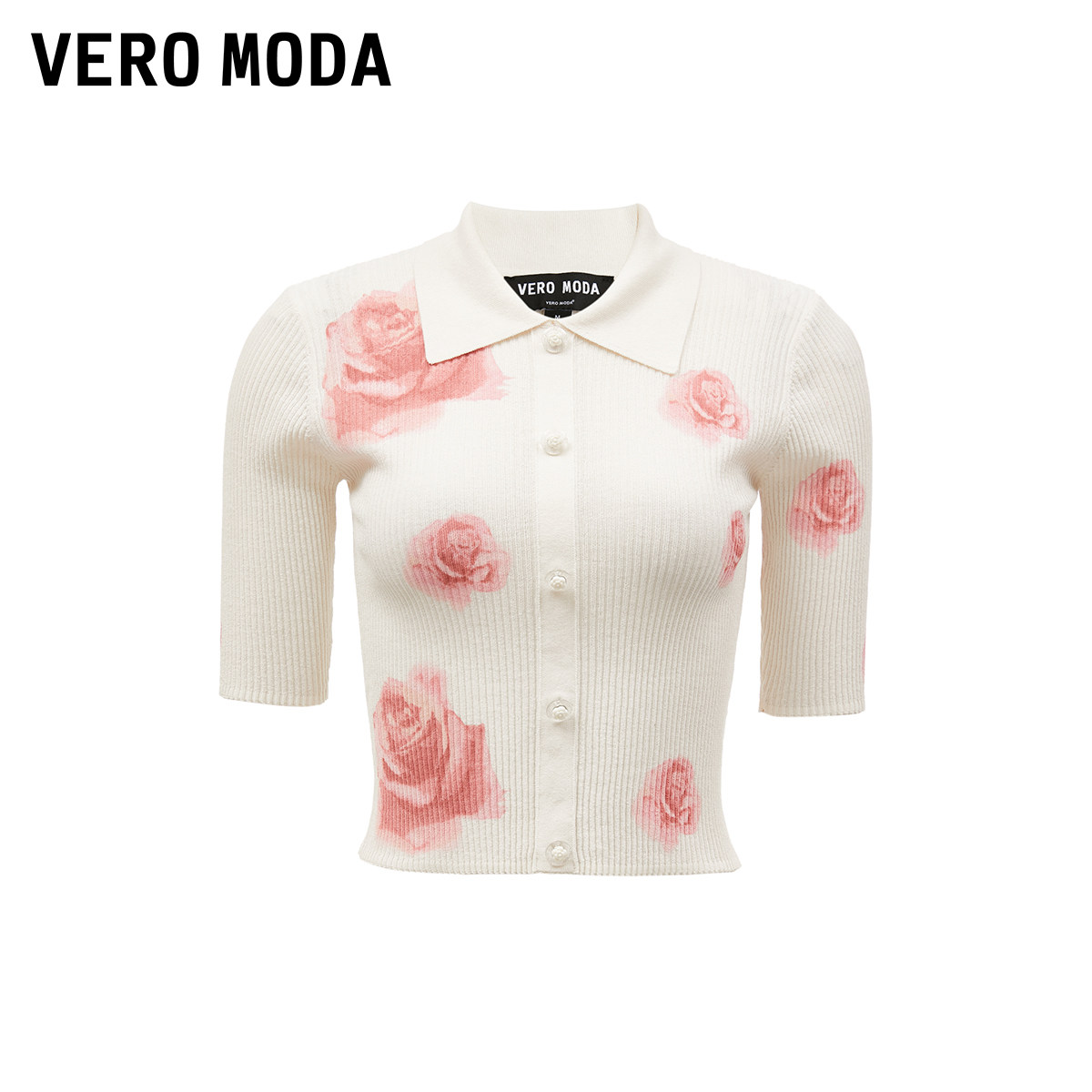 Vero Moda奥莱针织短袖女秋冬新款短款气质印花修身棉质浪漫毛衣
