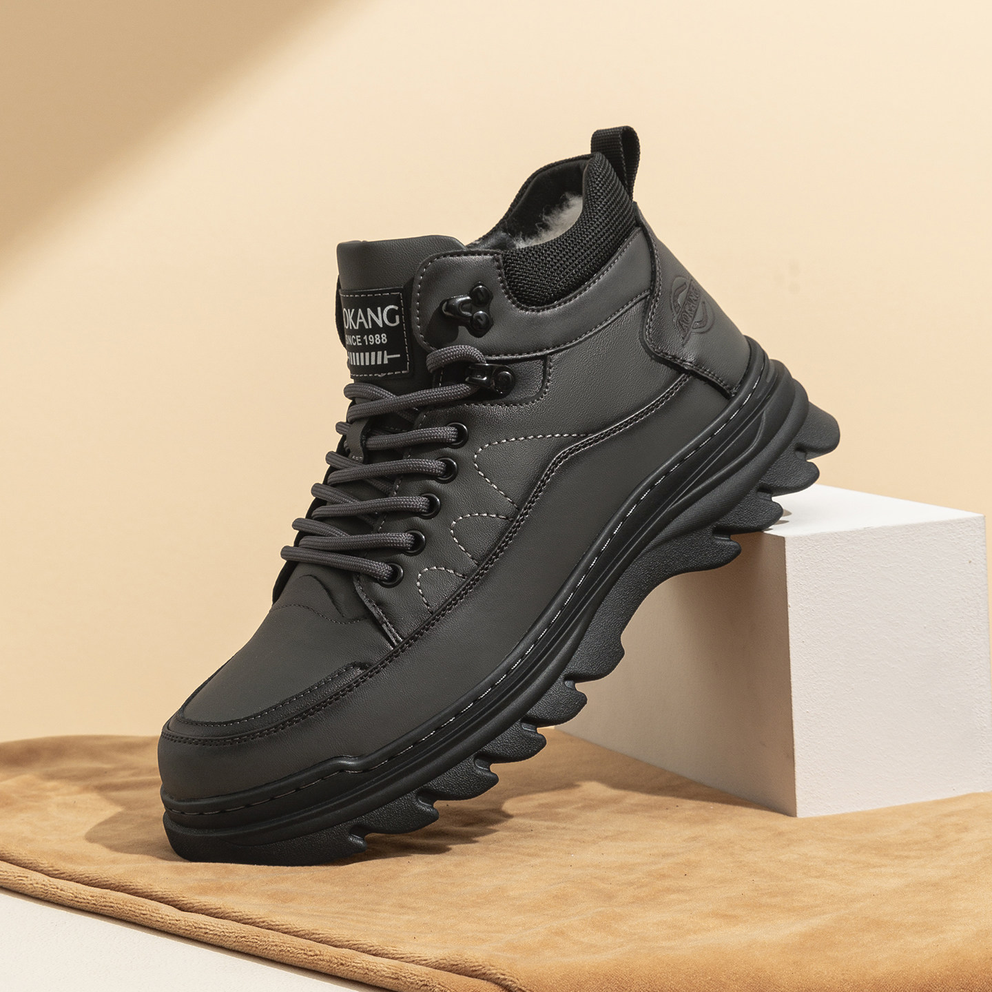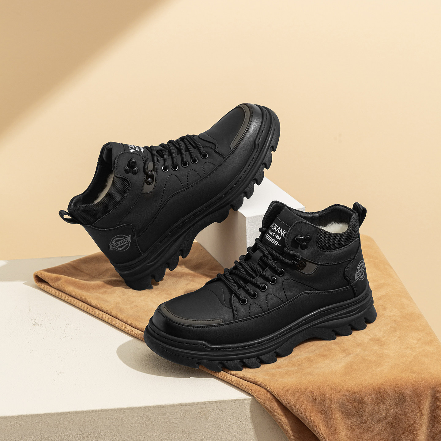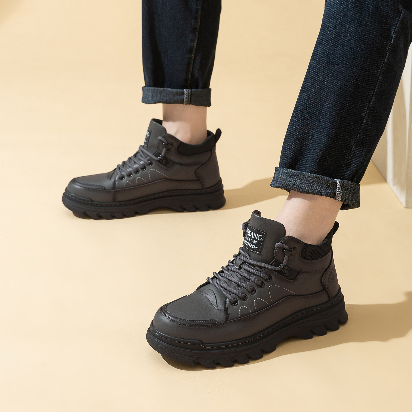 意尔康男鞋秋冬季2025新款加绒棉爆款高帮皮面板鞋男士马丁靴大码