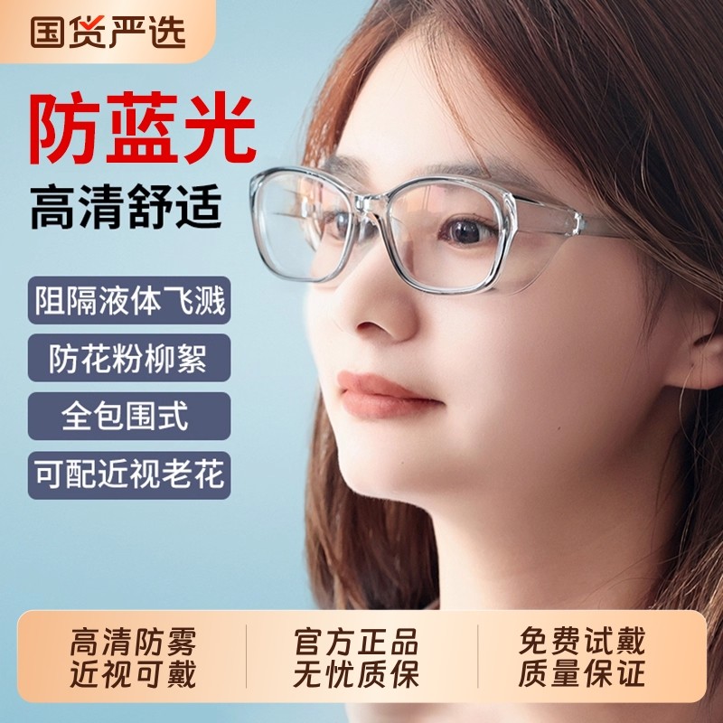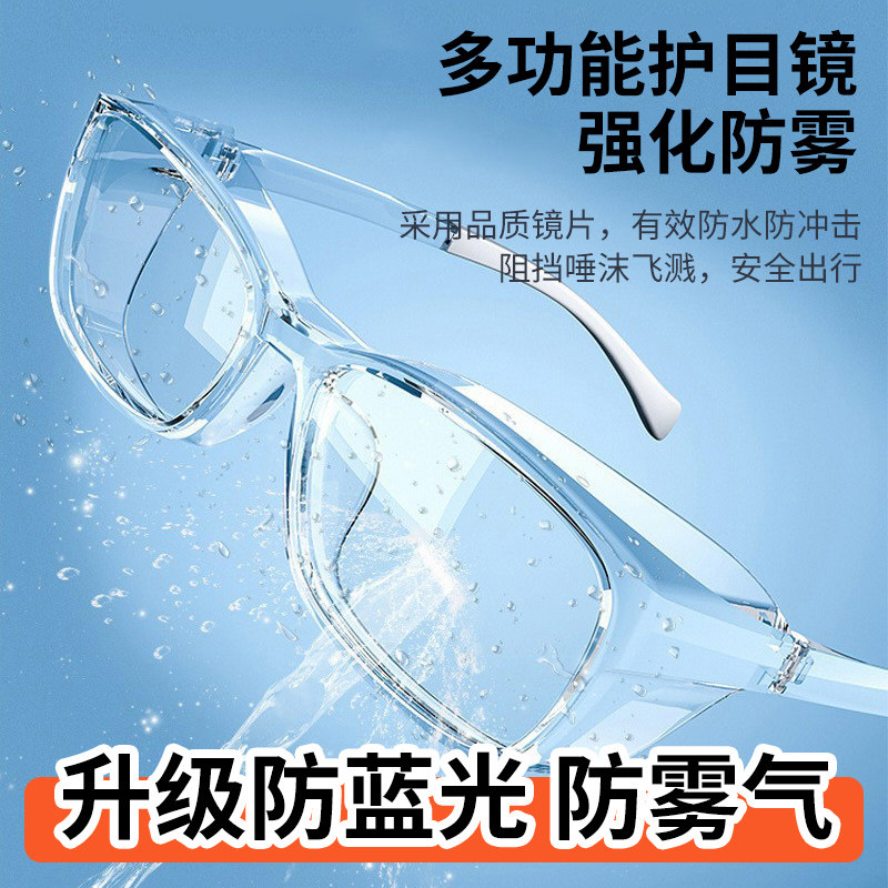 防雾防蓝光护目镜男女防风沙飞沫骑行变色手术后防护眼镜黑框高清