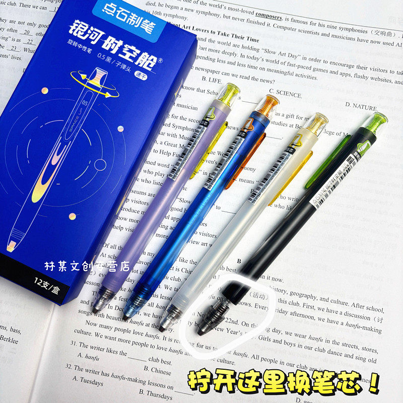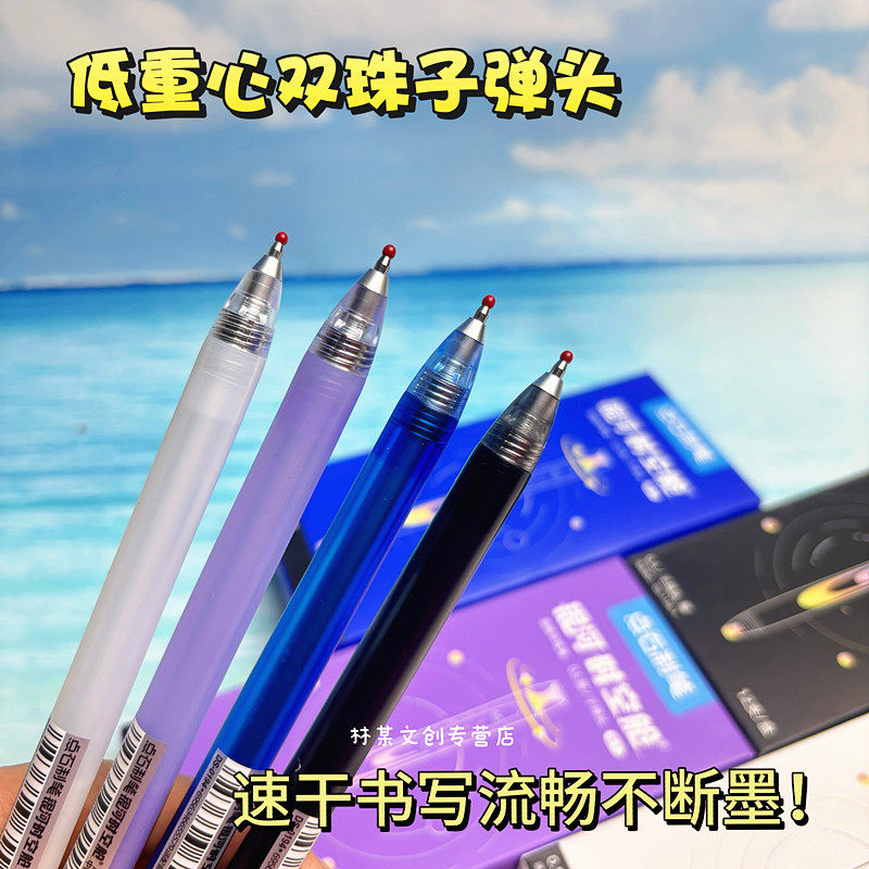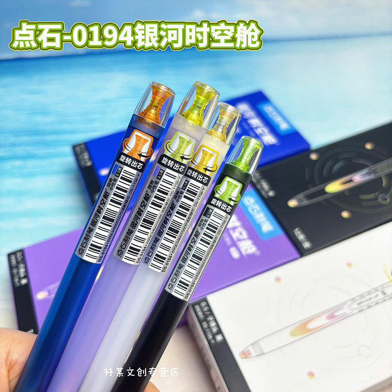 点石制笔旋转中性笔银河时空舱双珠速干静音黑笔顺滑学生刷题黑笔