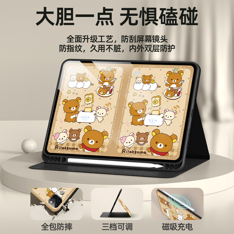 适用轻松熊苹果平板ipad保护壳10代9八8卡通ipadmini7可爱mini6带笔槽ipadair6保护套air5一体ipadpro情侣4女