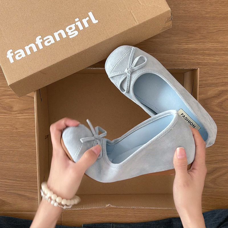 米霏~法式平底芭蕾单鞋女秋冬2026新款软底一脚蹬蛋卷鞋大码女鞋