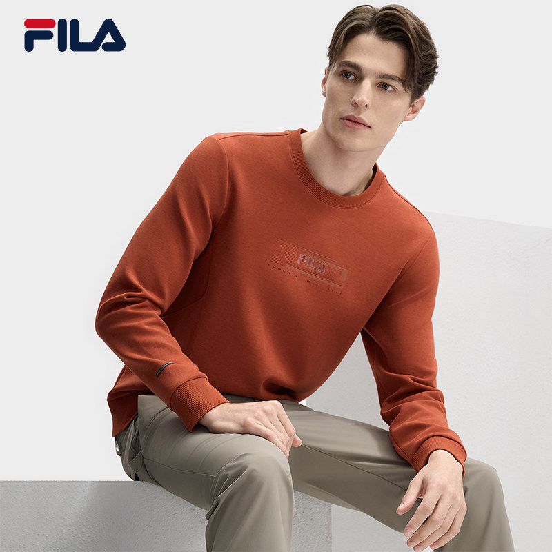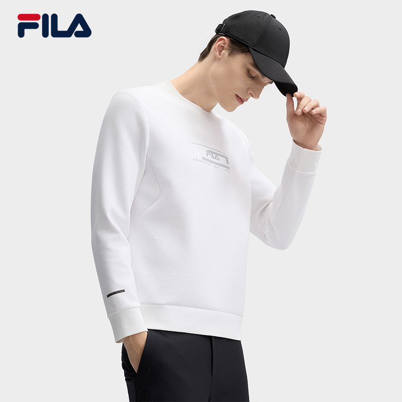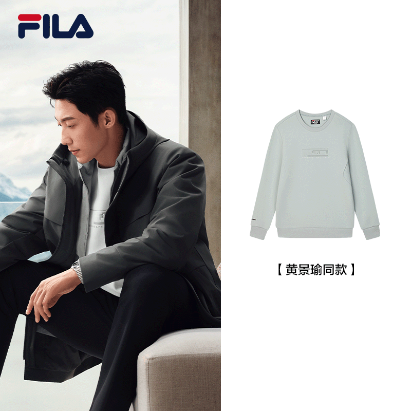 【黄景瑜同款】FILA斐乐套头卫衣男春季款黑色保暖商务上衣