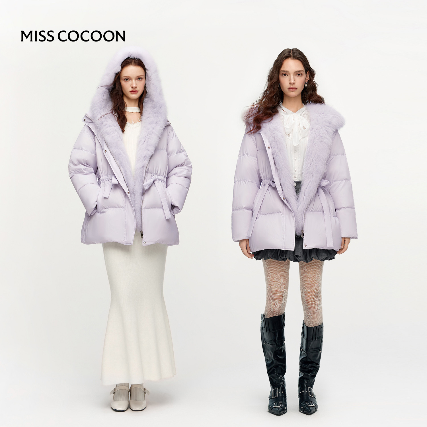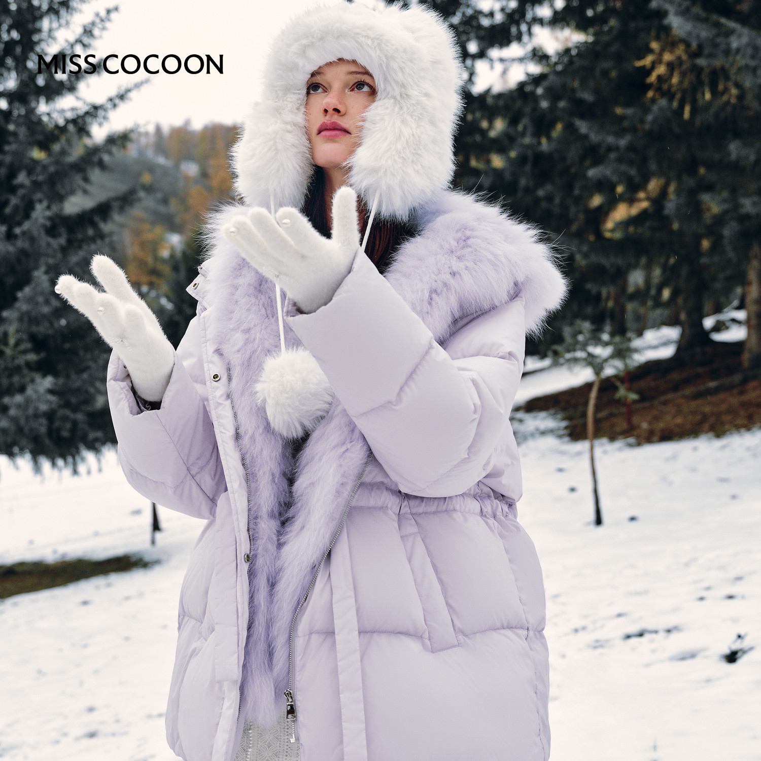 沈月同款MISSCOCOON中长款2025冬新款狐狸毛领90白鸭绒羽绒服女