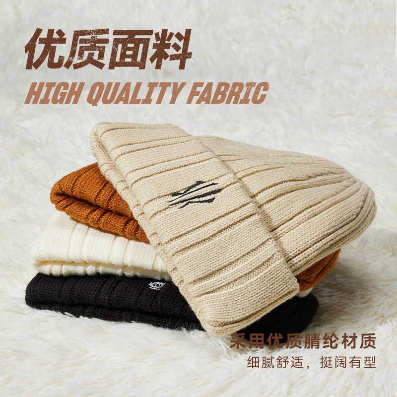 安踏欧文针织帽冬季保暖加绒冷帽抓绒帽毛线帽刺绣百搭简约情侣