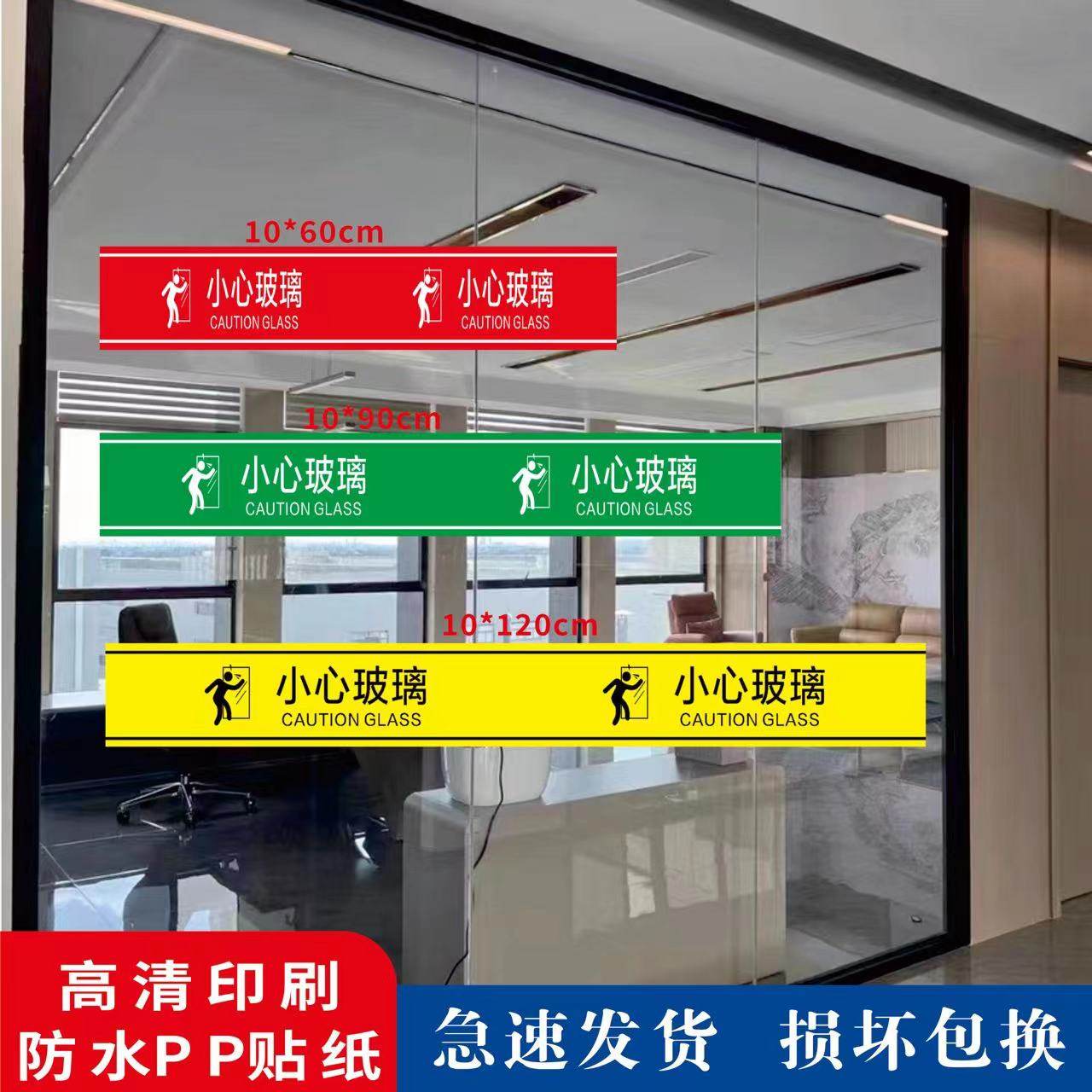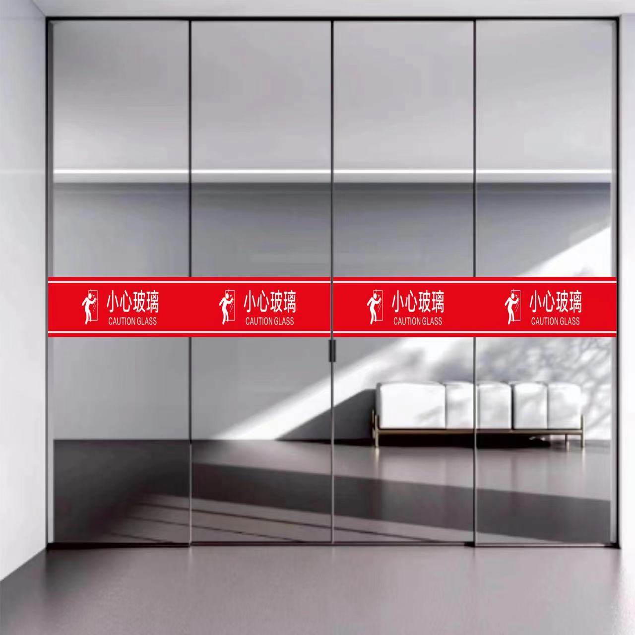 小心玻璃腰线背胶贴 玻璃贴店铺橱窗餐馆玻璃门防撞标识贴当心玻璃公司酒店贴条装饰浴室当心注意玻璃提示贴