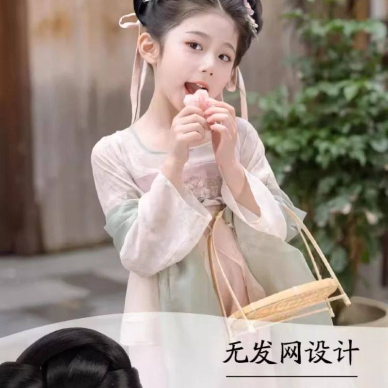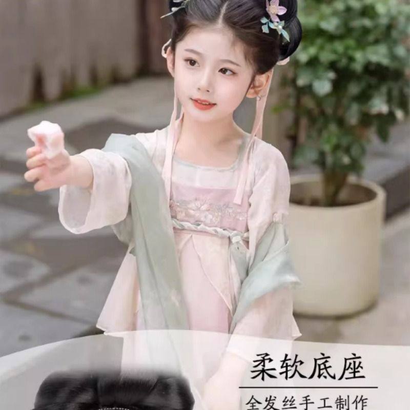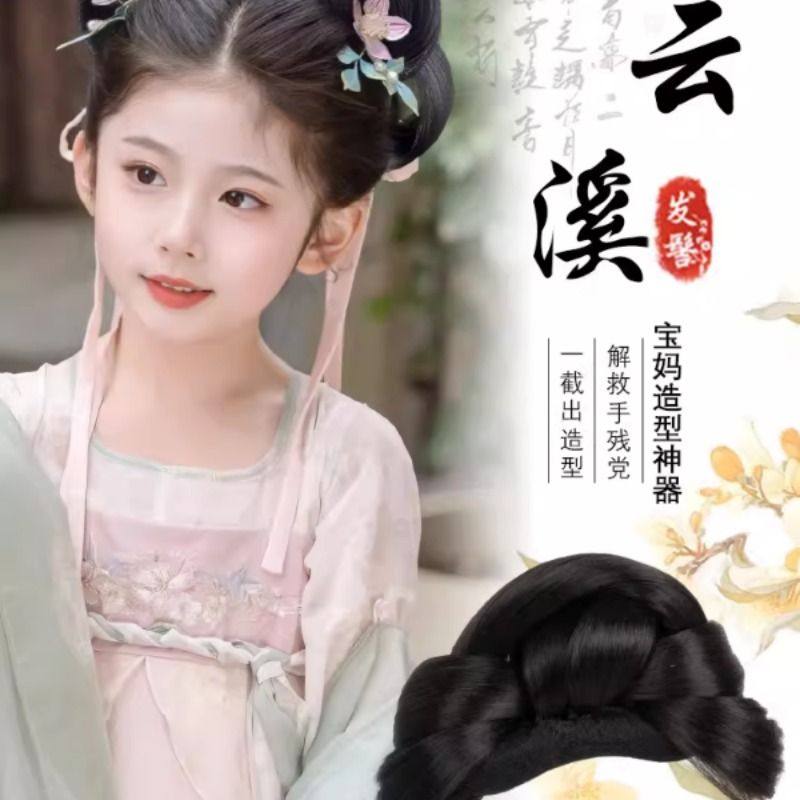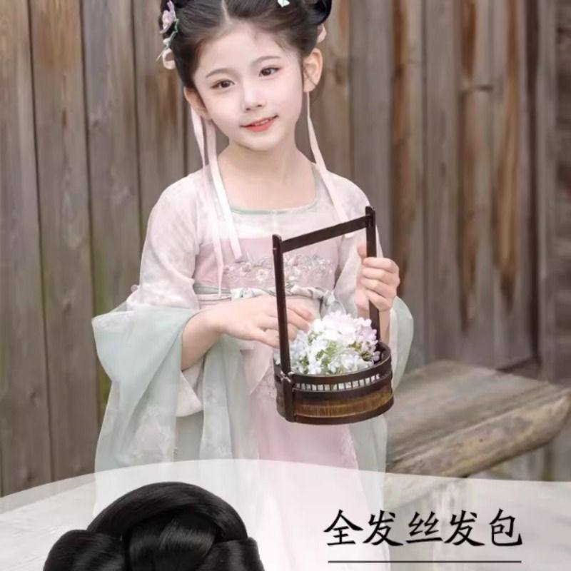 儿童汉服假发女童古风头饰古装全发丝发髻日常造型头顶盘发垫发包