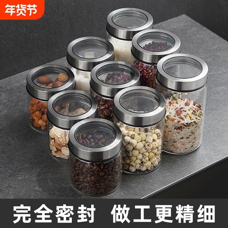 玻璃密封罐储物罐厨房茶叶咖啡豆食品瓶子五谷杂粮收纳盒透明罐子