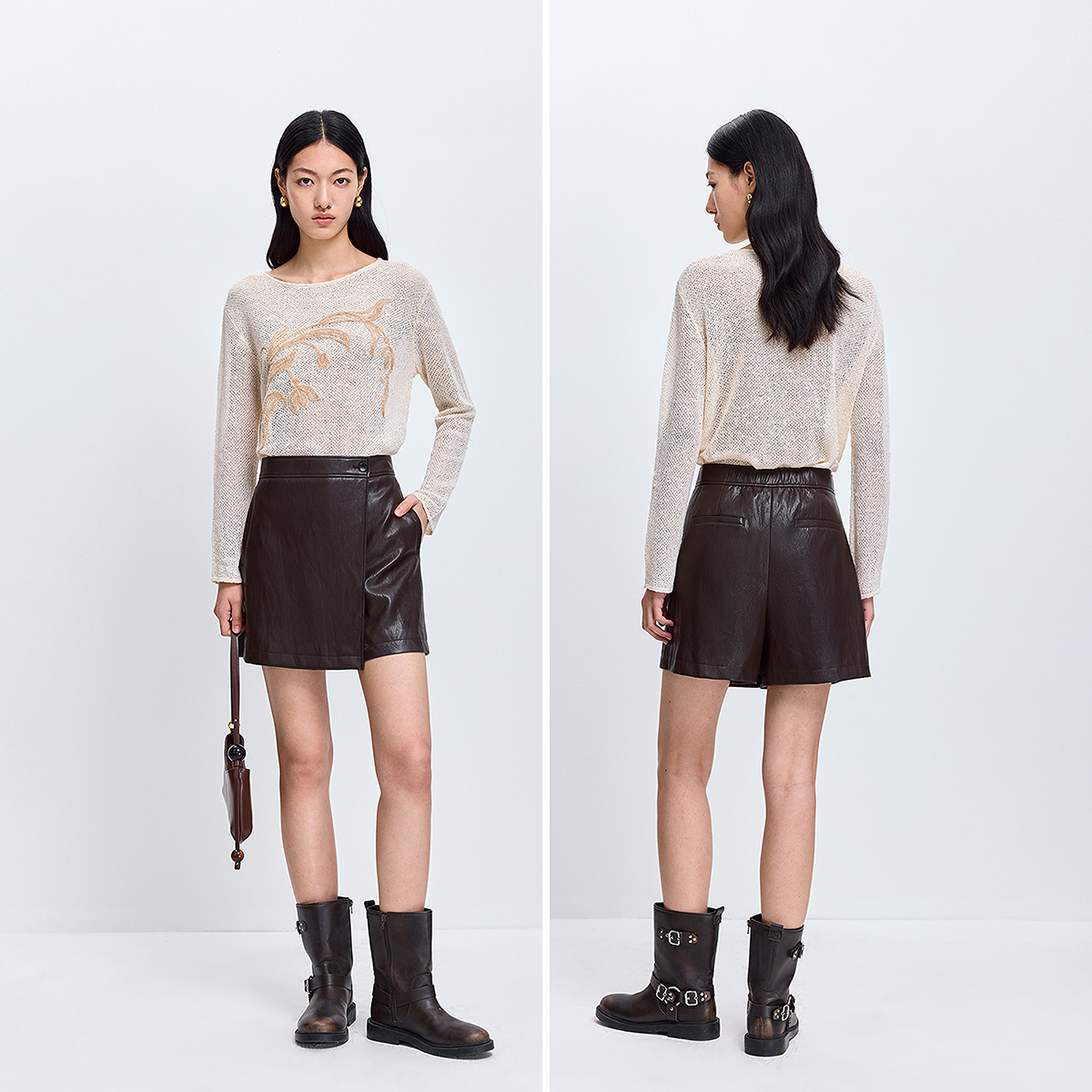 LILY2026春新款复古休闲百搭气质通勤深色裙裤女A字直筒阔腿短裤