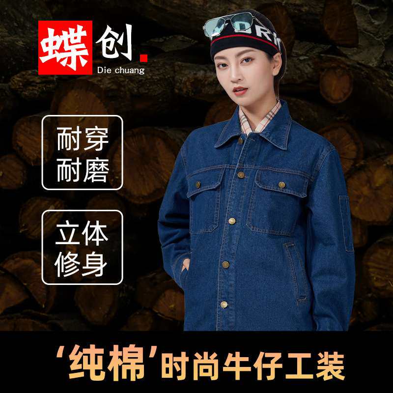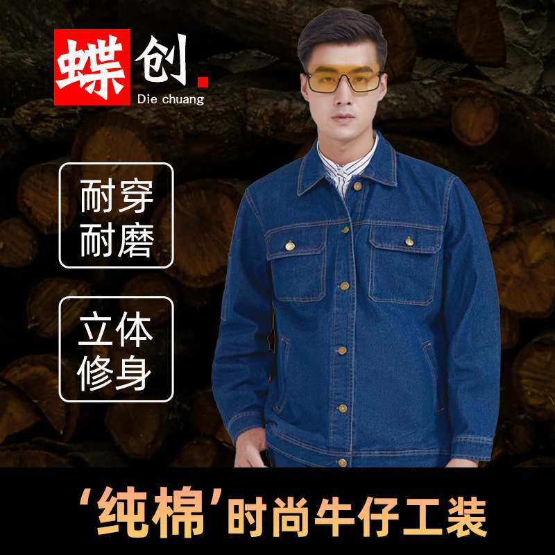工作服套装男纯棉电焊男士工装制服牛仔套装建筑工地耐脏劳保服