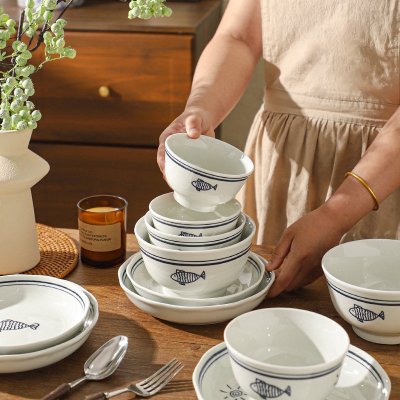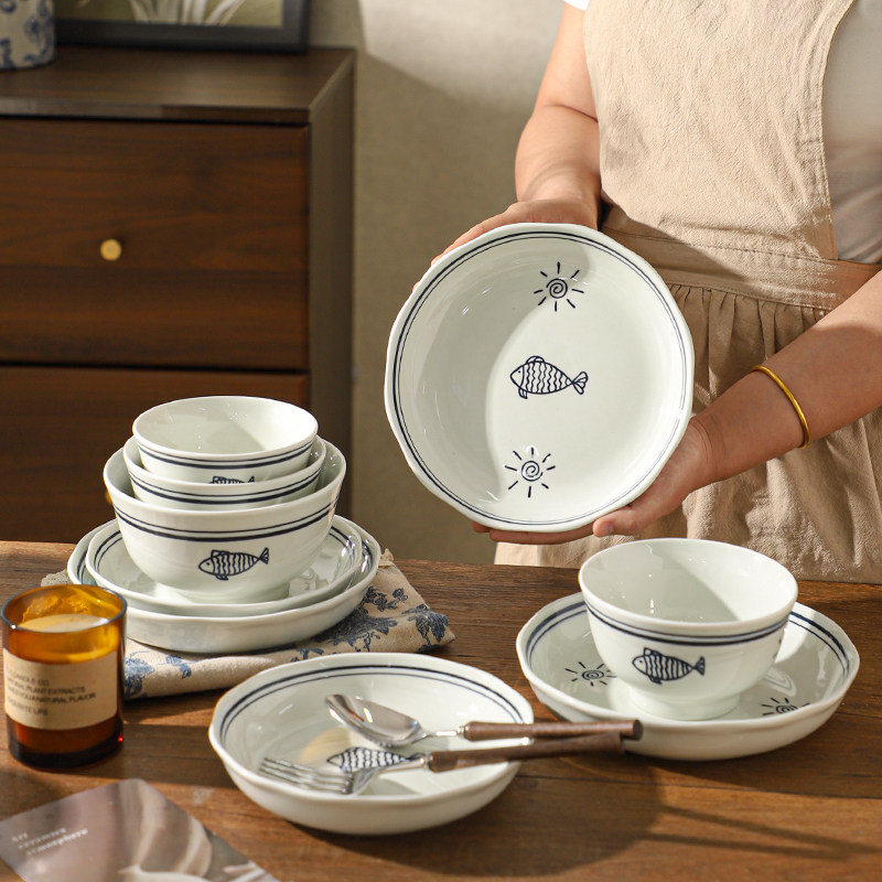 釉下彩陶瓷餐具套装家用2025新款碗碟盘子碗具日式乔迁新居碗盘筷