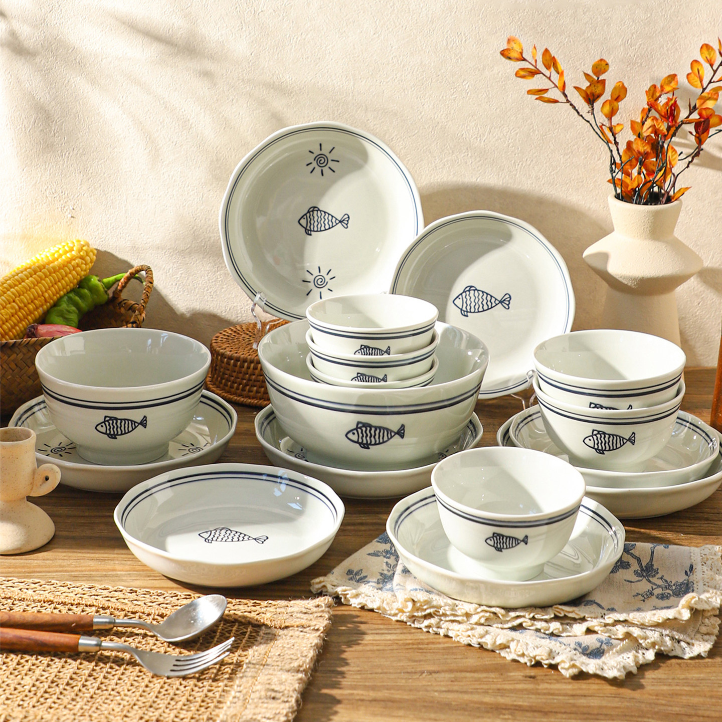 【直播专享】舍里餐具套装碗碟组合复古碗筷套装家用乔迁碗盘碗具