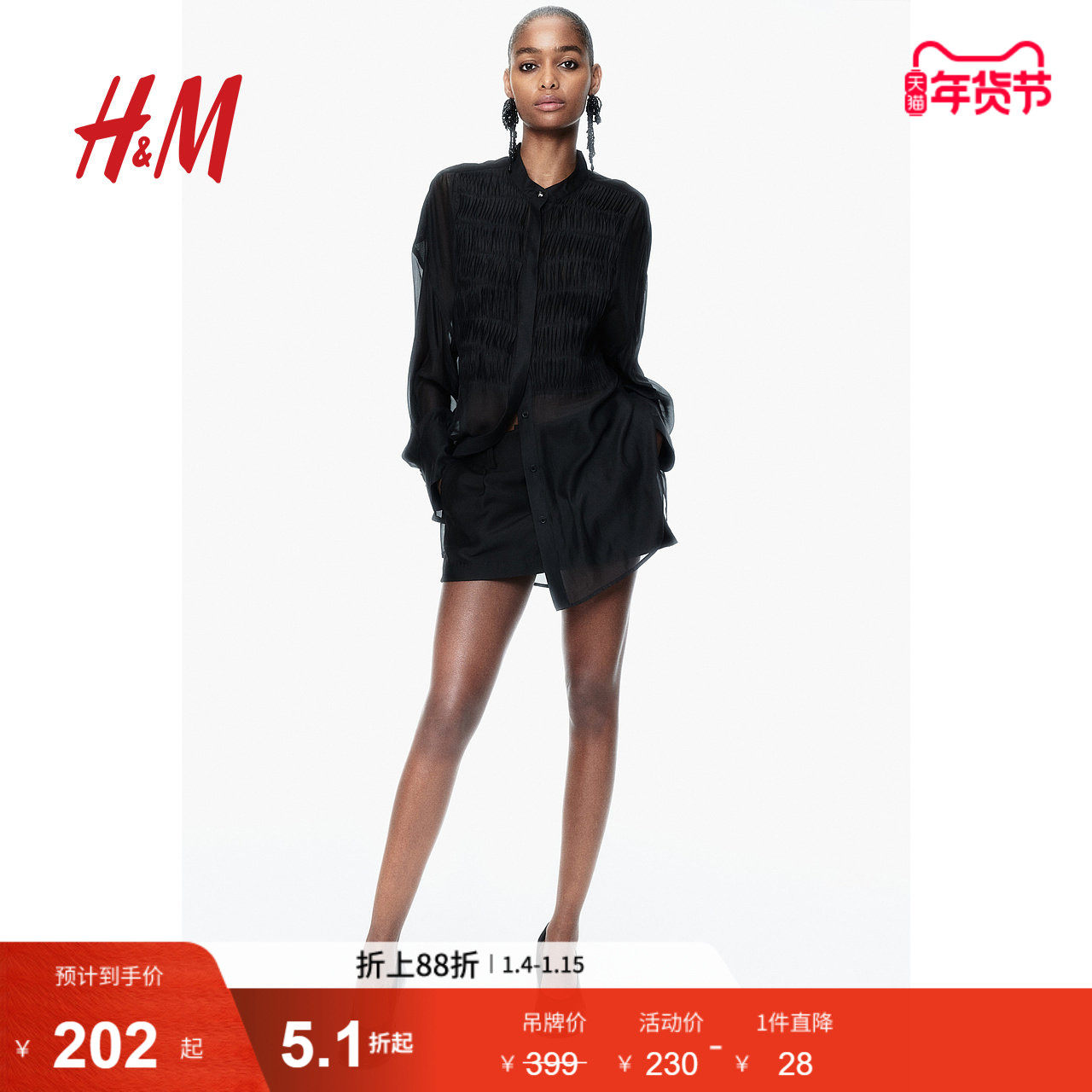 HM女装衬衫冬季正面褶裥设计雪纺衬衫1269687