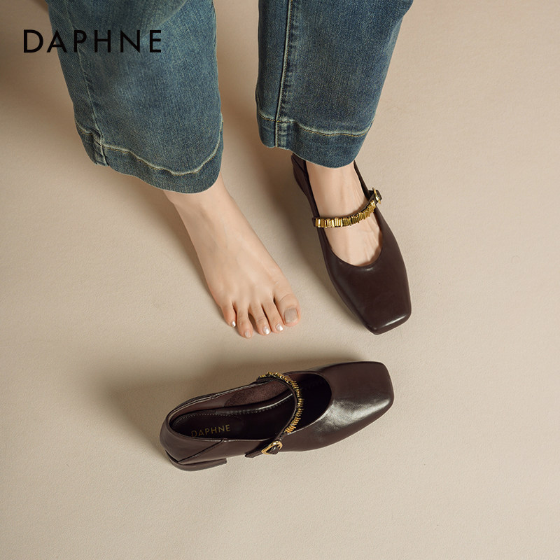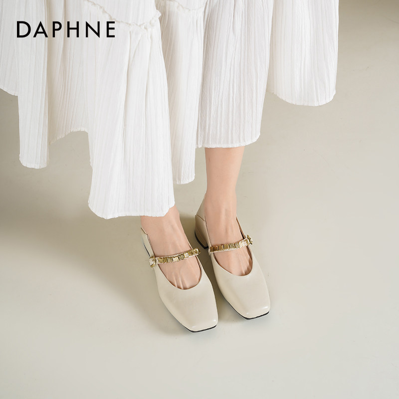 达芙妮玛丽珍鞋女2026新款春季法式方头配裙子一字带平底浅口单鞋