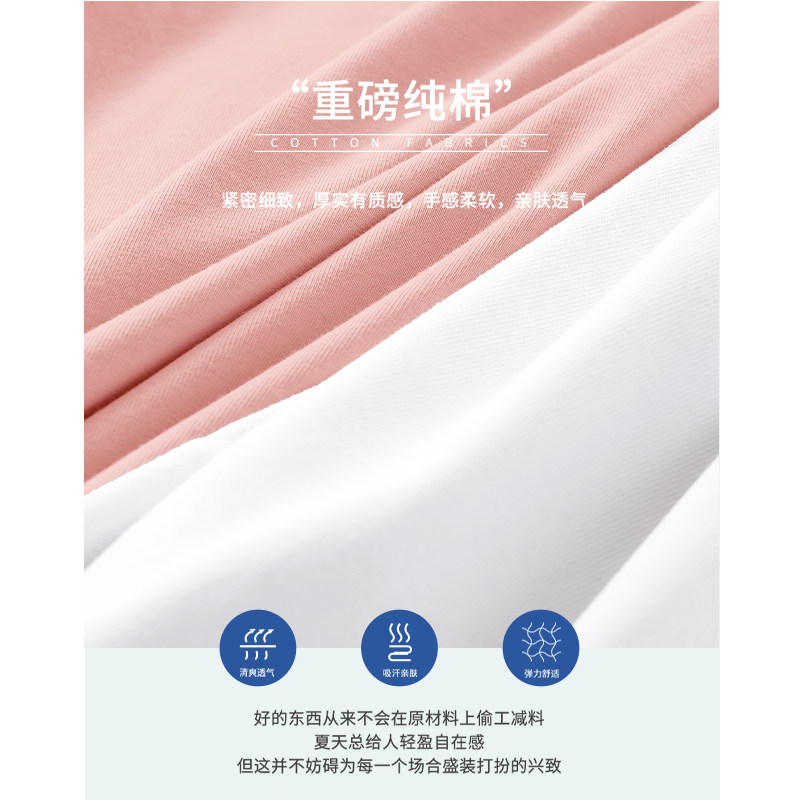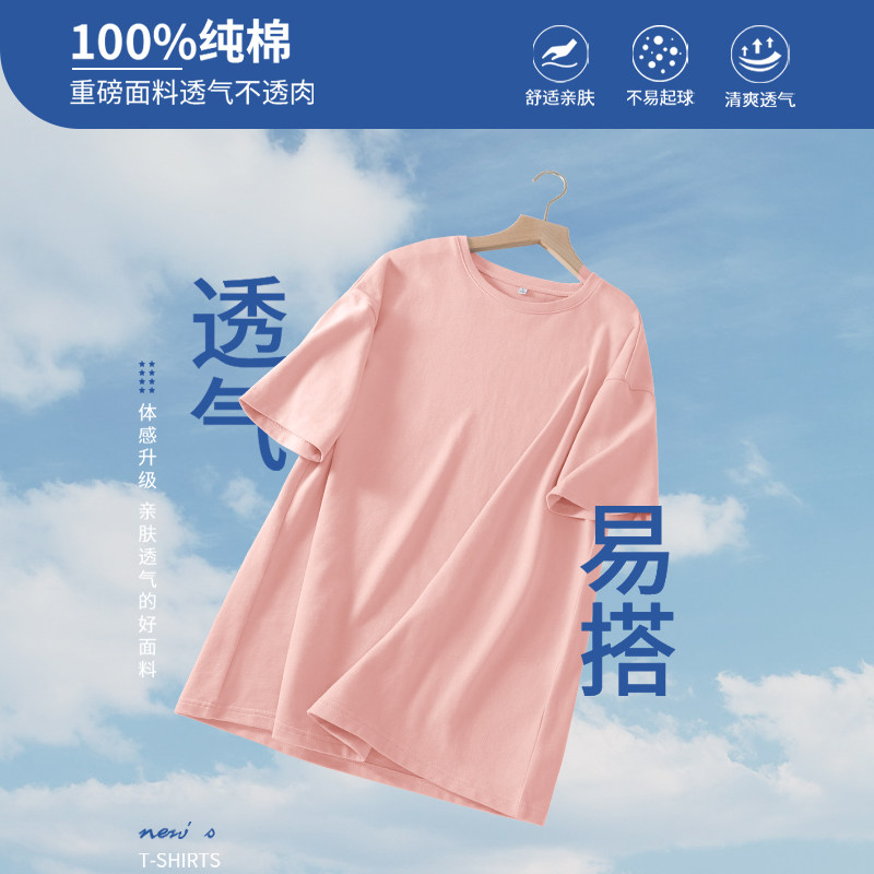 新国货100纯棉t恤女130支双面丝光棉短袖V圆领宽松大码夏季鸡心领