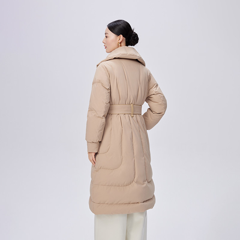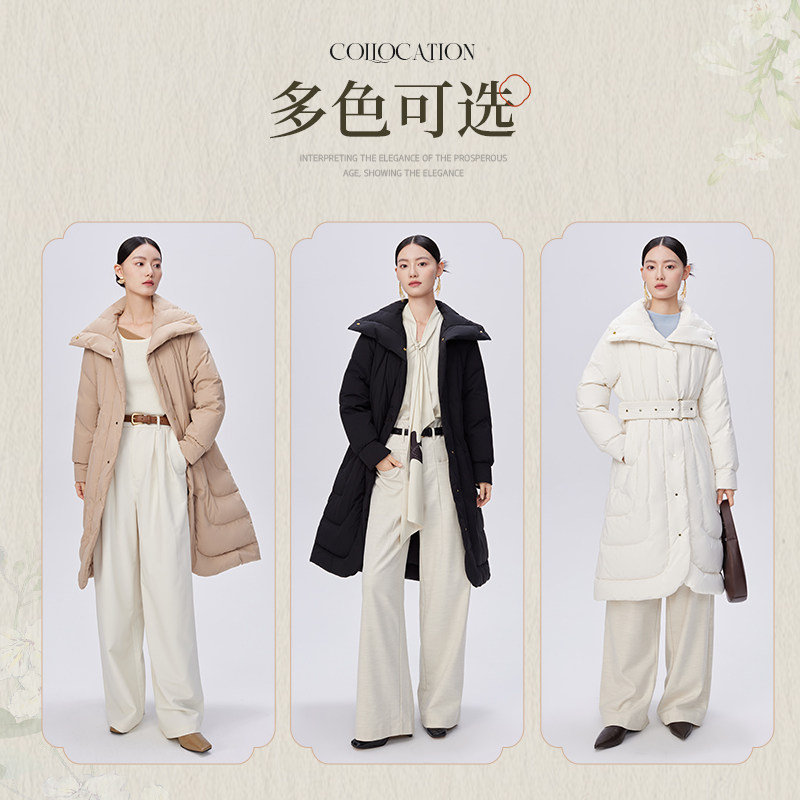 艾莱依国风鹅绒服女气质收腰翻领新中式羽绒服长款保暖复古外套冬