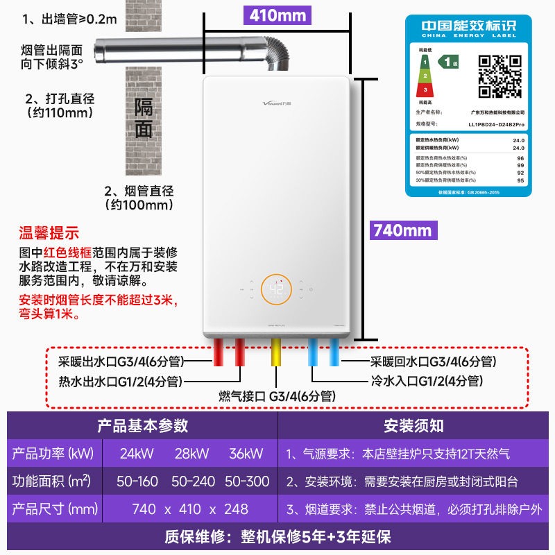 万和 燃气壁挂炉DB2Pro家用天然气采暖壁挂地暖锅炉热水器