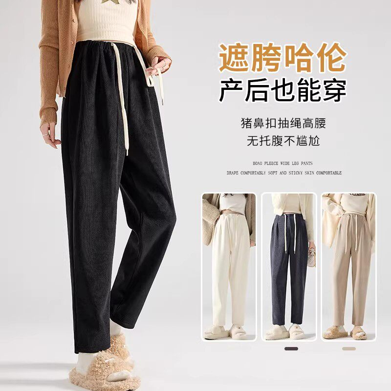 孕妇裤冬季加绒加厚2026新款羊羔绒直筒裤子时尚外穿秋冬款阔腿裤