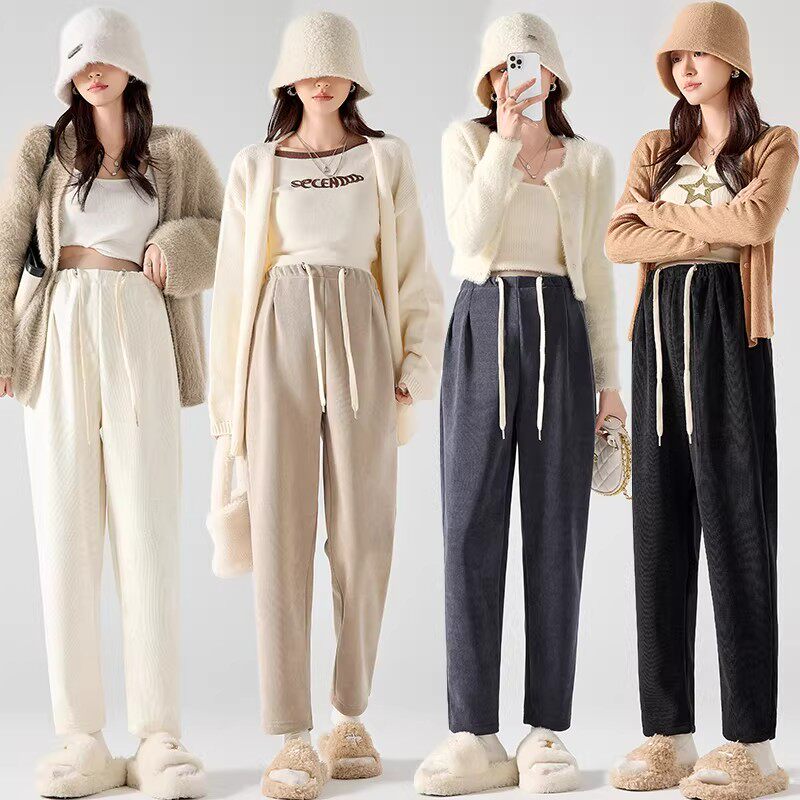 十月结晶孕妇糯米裤冬季外穿不勒肚阔腿松紧腰宽松厚运动裤小个子