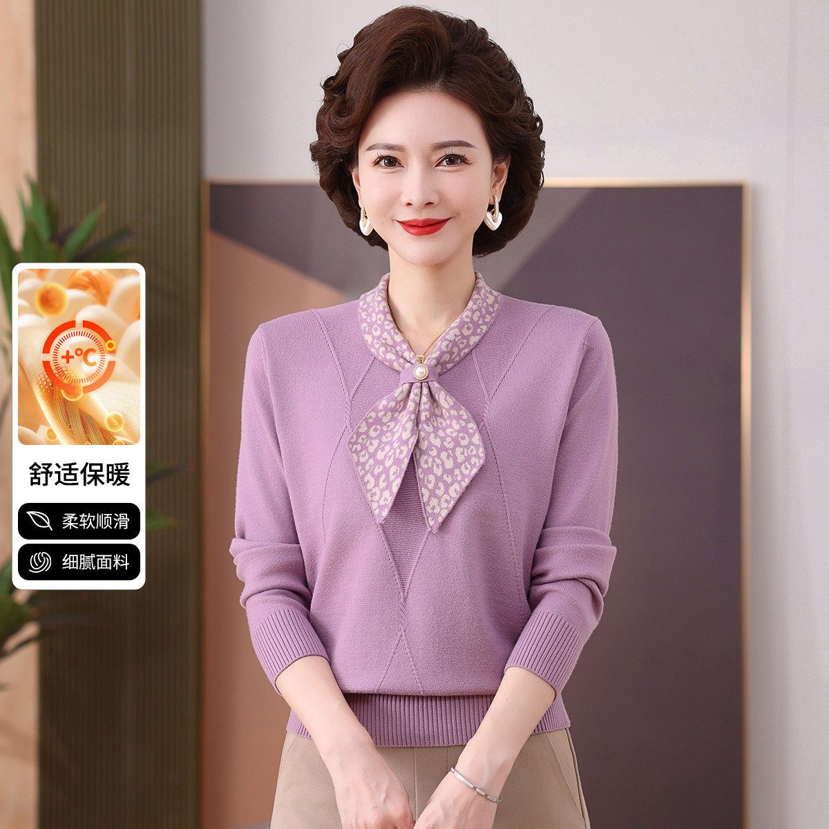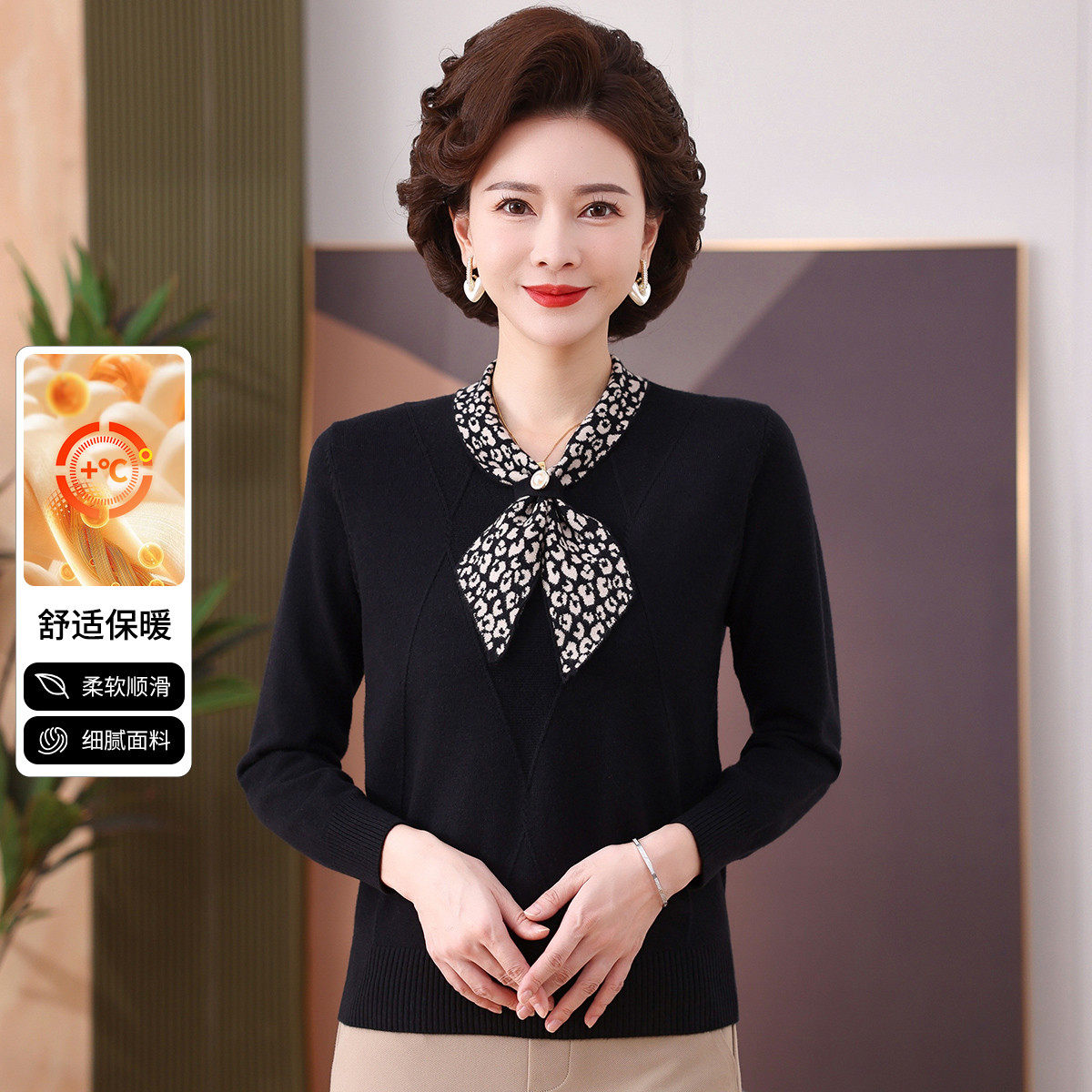 【围巾领妈妈装】26年秋冬内搭毛衣女保暖厚实女士长袖针织衫