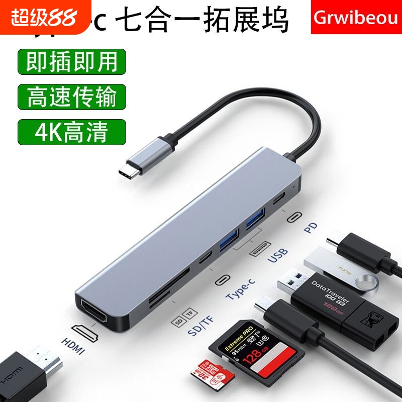 Type-C扩展坞USB分线器USB转换器HDMI转接拓展坞投屏扩展PD快充适用手机平板电脑type-c转电脑接网线多功能
