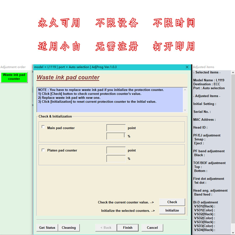 爱普生清零软件长期版L4260L4263L4265L4266L4267L4268L4269教程