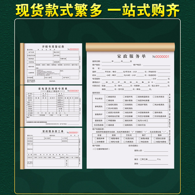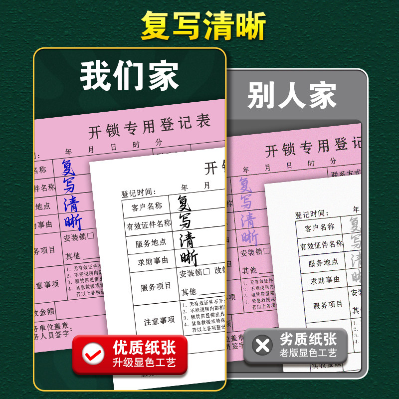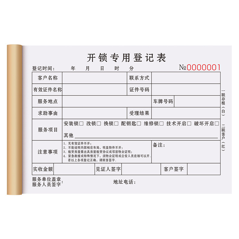 开锁登记表锁匠工收据清单锁具修锁派工单门锁指纹锁保修单据薄配钥匙上门服务收费记录本智能锁换锁售后票据