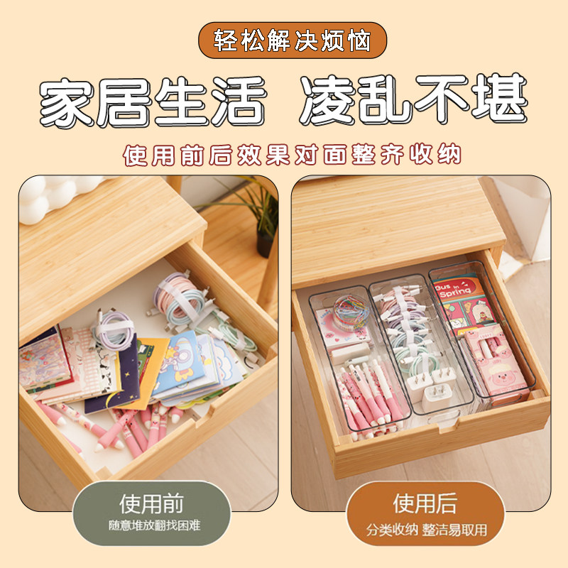 桌面宿舍收纳盒长条窄长型长方形亚克力透明杂物小物件抽屉分隔盒