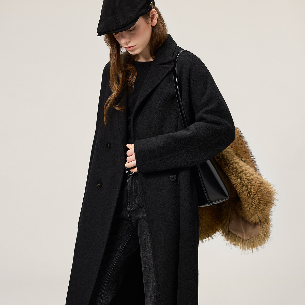 悦戎秘鲁进口苏力羊驼毛大衣女中长款2025秋冬皮草感羊毛呢外套
