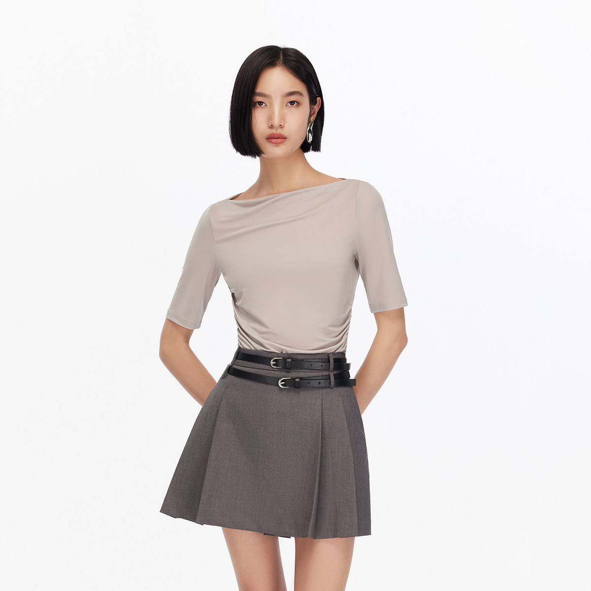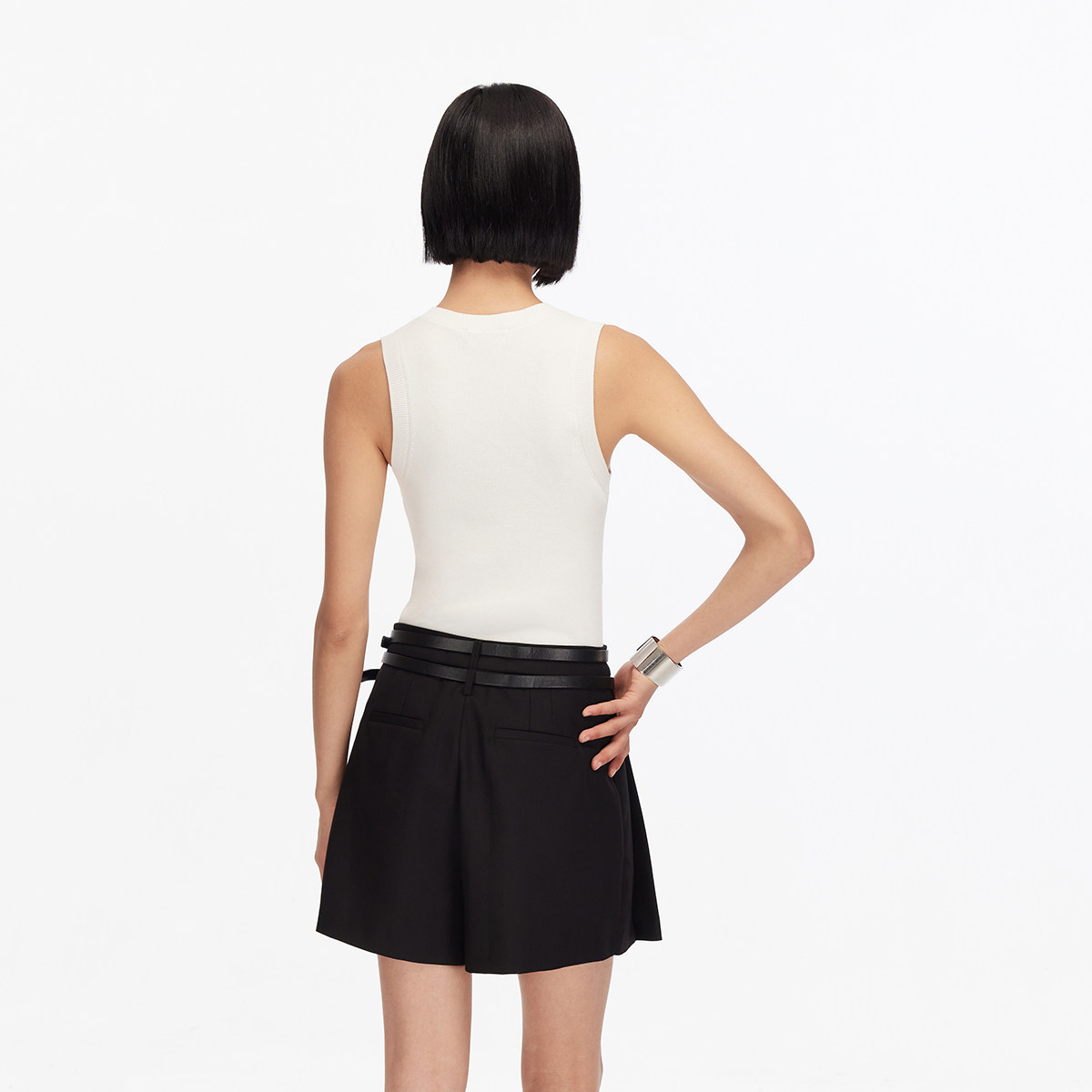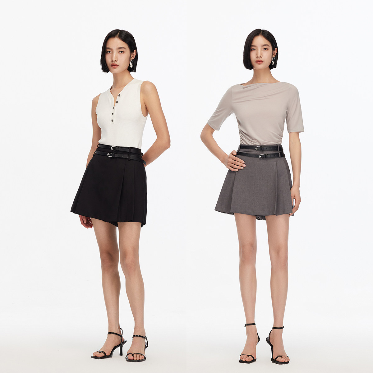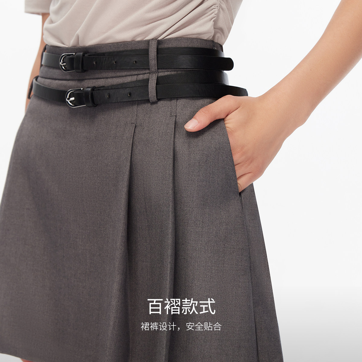 Vero Moda短裤2025秋季新款高腰显瘦双腰带设计百褶裙裤学院减龄