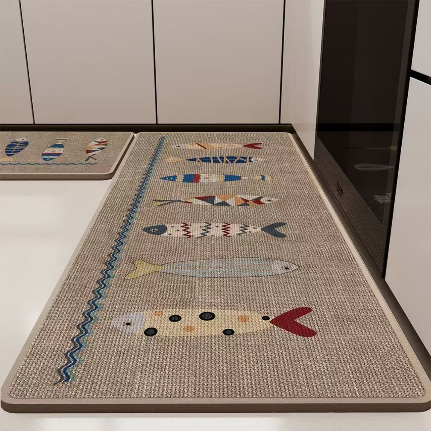 亚麻编织厨房地垫卡通吸水吸油防滑专用耐脏地毯长条脚垫子可机洗