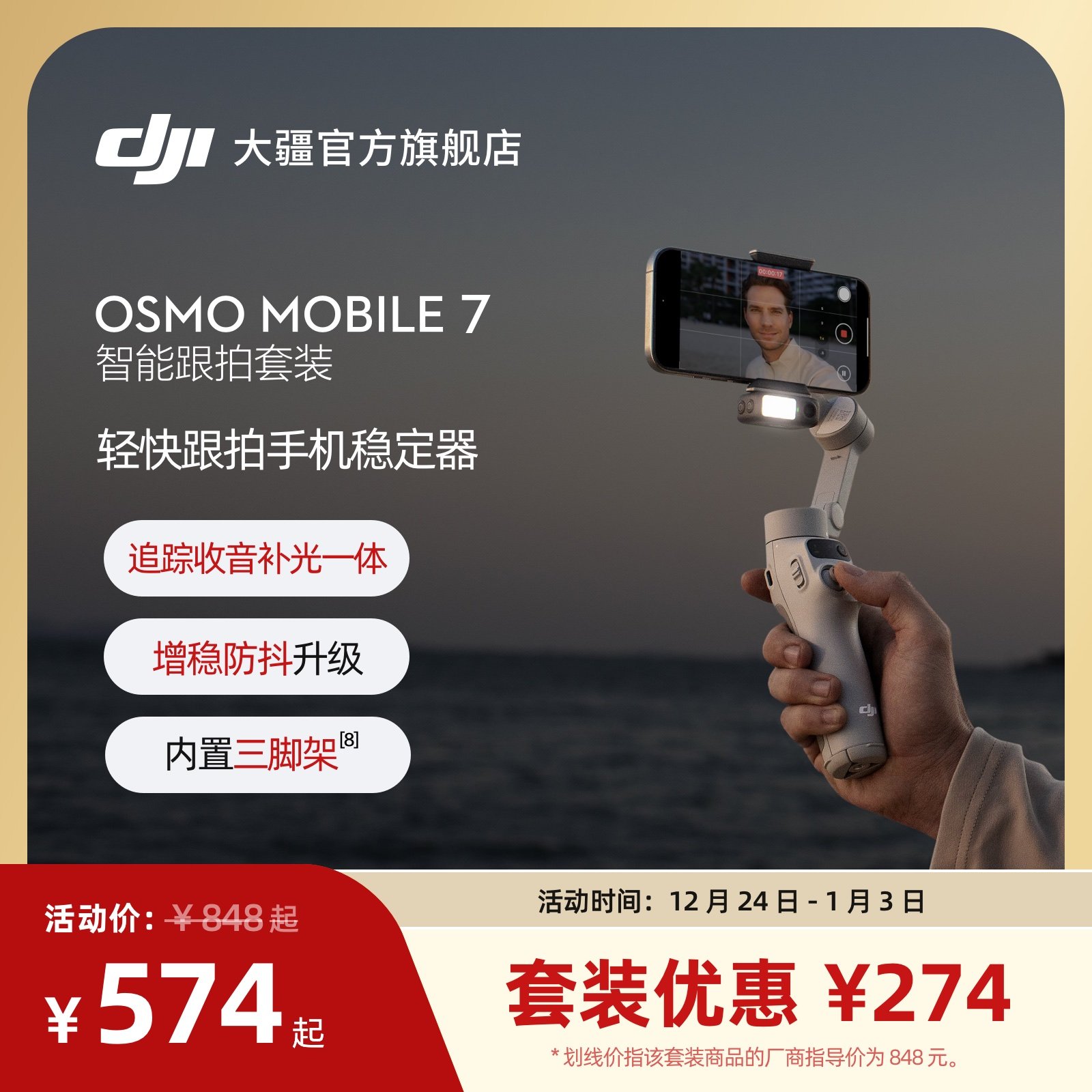 大疆 DJI Osmo Mobile 7 轻快跟拍手机稳定器 OM智能追踪防抖自拍杆折叠便携三脚架直播vlog拍摄神器手持云台