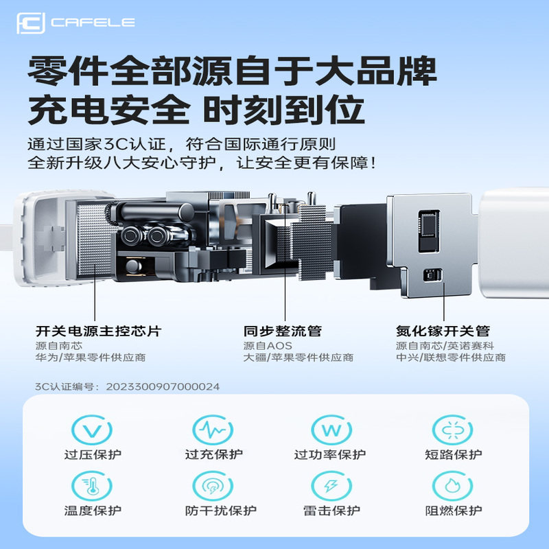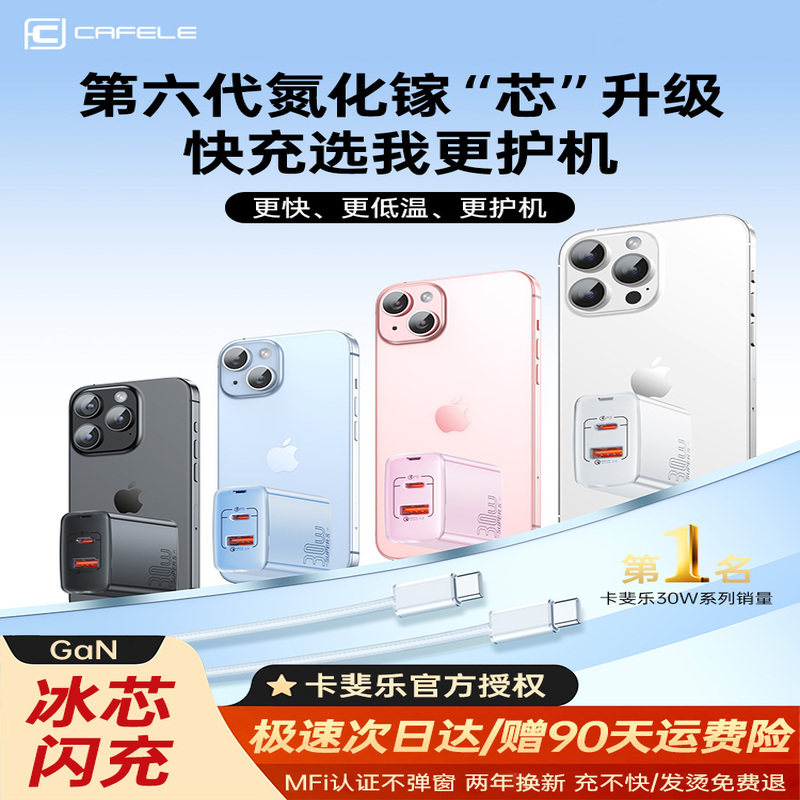 卡斐乐20w双口适用苹果充电器15充电头usbc快充头iPhone14Promax手机typec数据线pd正品套装12ipad平板13插头
