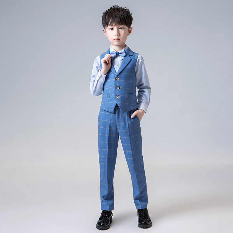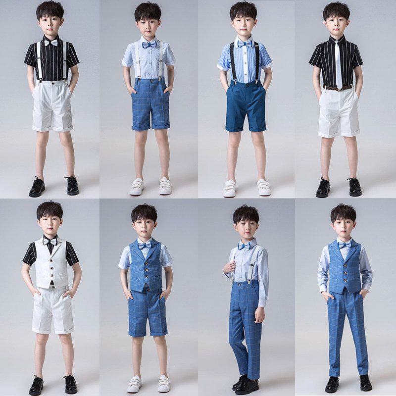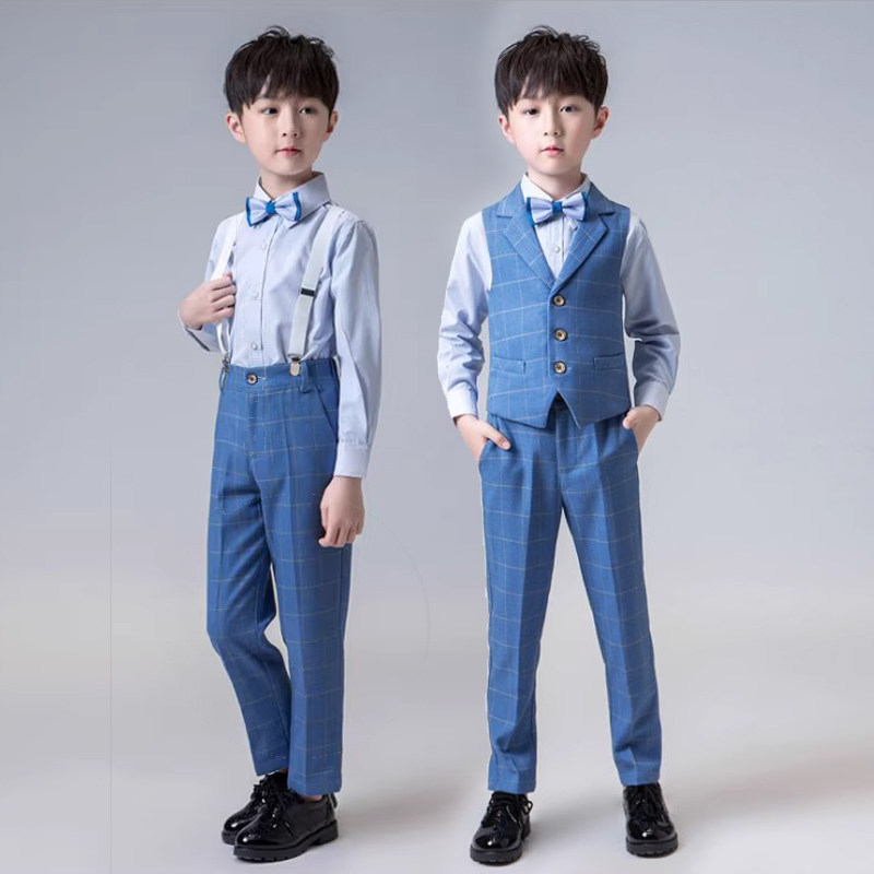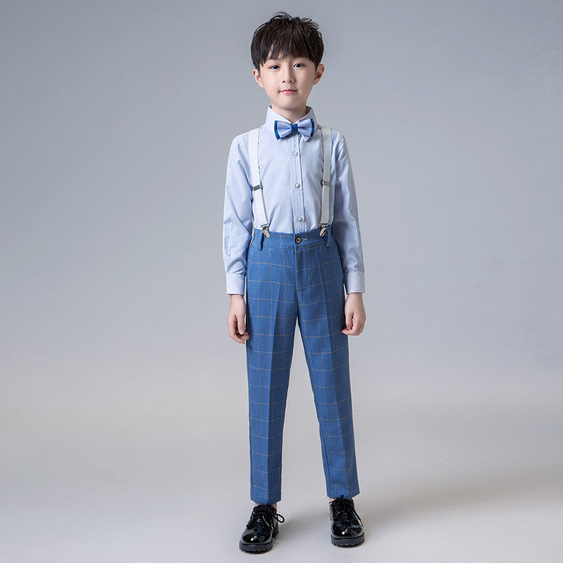 男童礼服儿童西装套装主持人演出服小男孩朗诵表演服衬衫纯棉蓝色