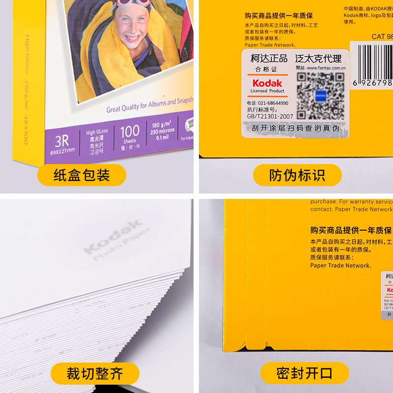 柯达6寸A4高光相纸5寸7寸A6照片纸RC防水喷墨打印4r相片纸高光绒面230克200克180克照相纸相册纸3r像纸相片纸